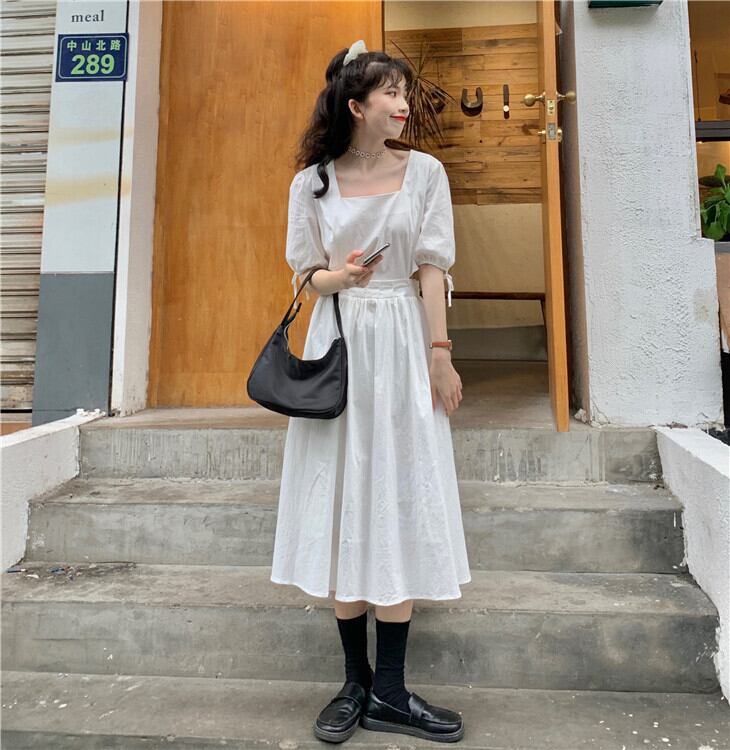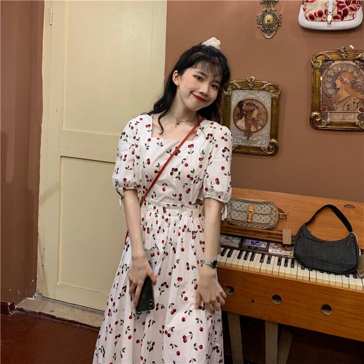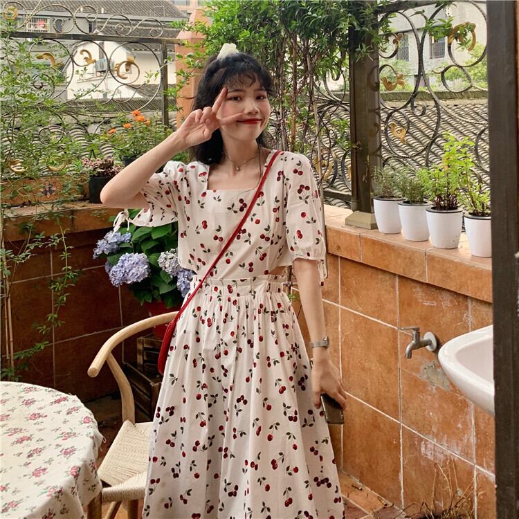 夏服スカート 韓国ファッションフローラルスリーブワンピースレディース 夏物 花柄 スクウェア SPM73488093815