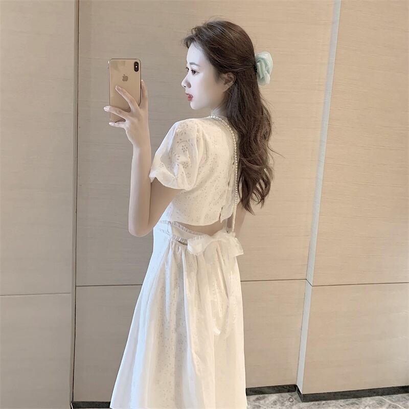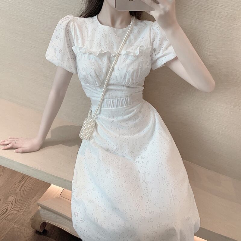 スリーブホワイトワンピースレディース夏服ウェストロングスカート 夏物 ウエスト SPM17559249210