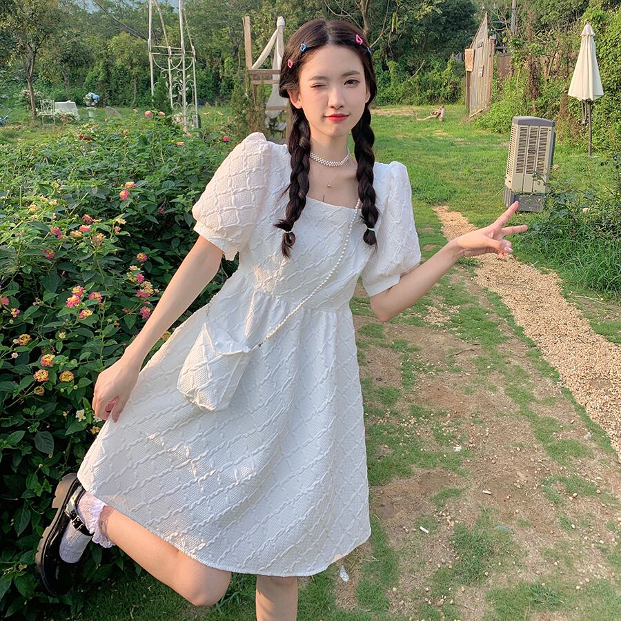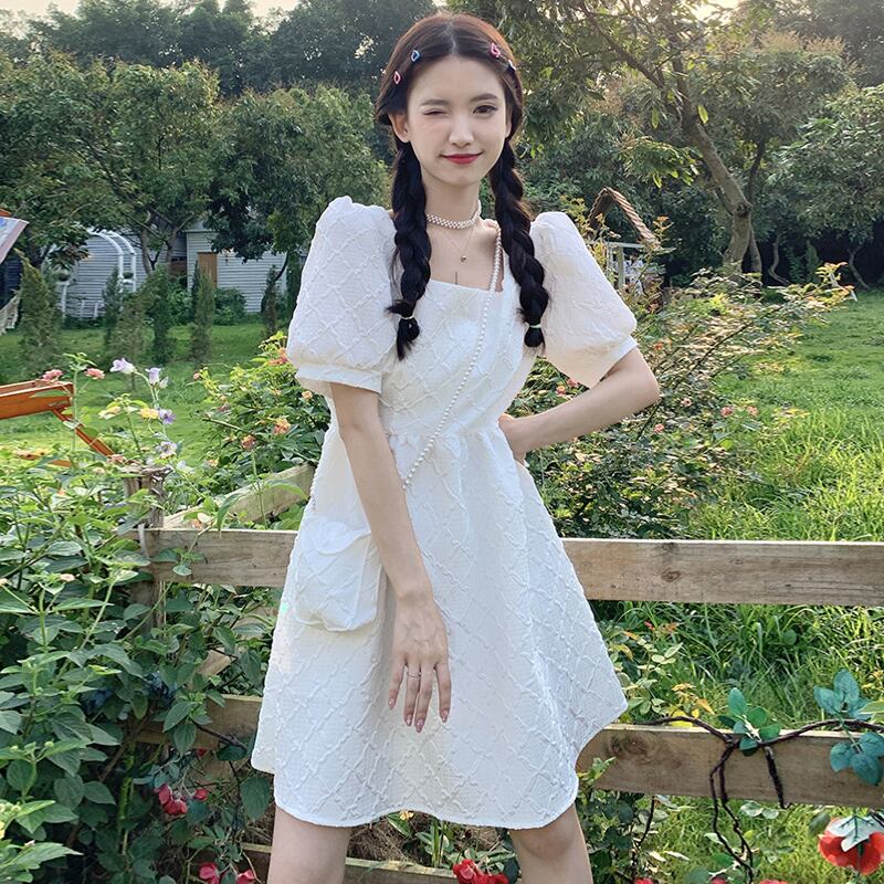 スリーブホワイトワンピースレディース夏服ショートスカート 大人ガーリー スウィート キュート カジュアル 夏物 SPM78202486958