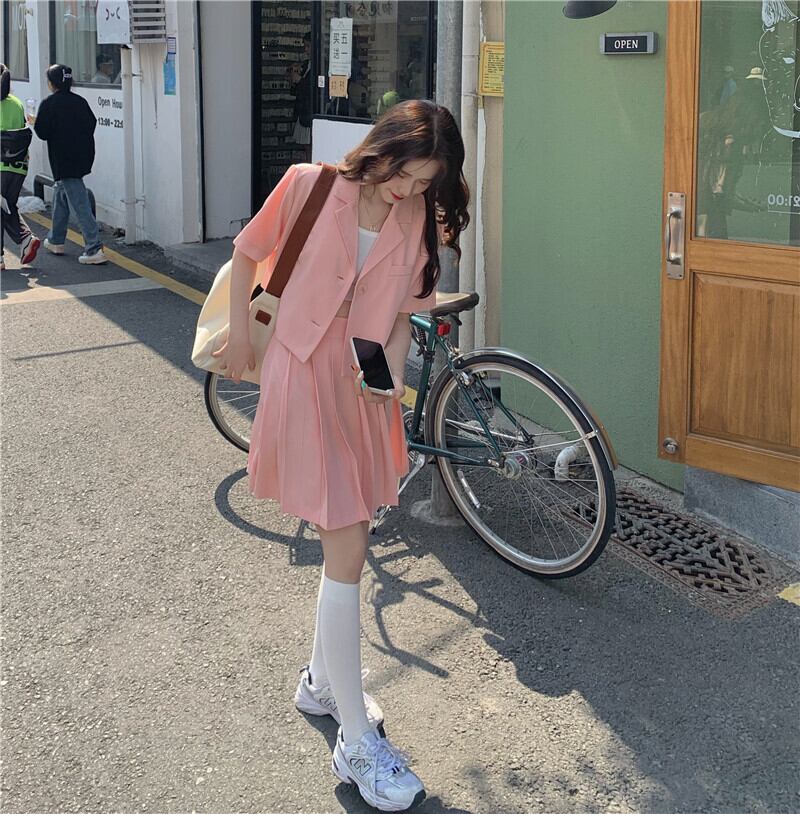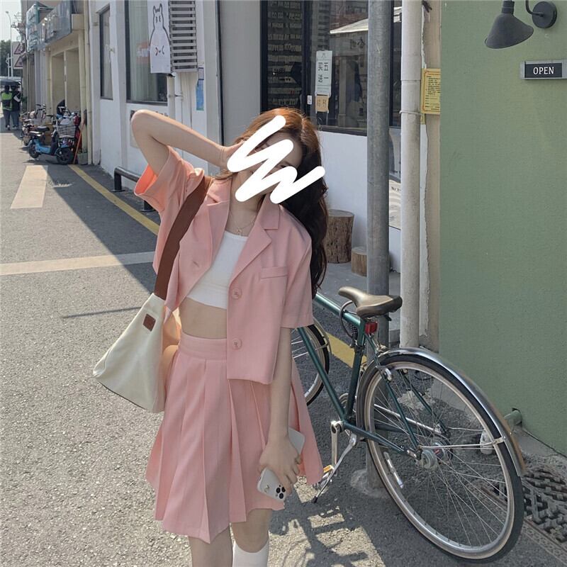 レディース夏服ショートジャケット ハイウェストウェストプリーツスカート 夏物 ウエスト SPM10164756789