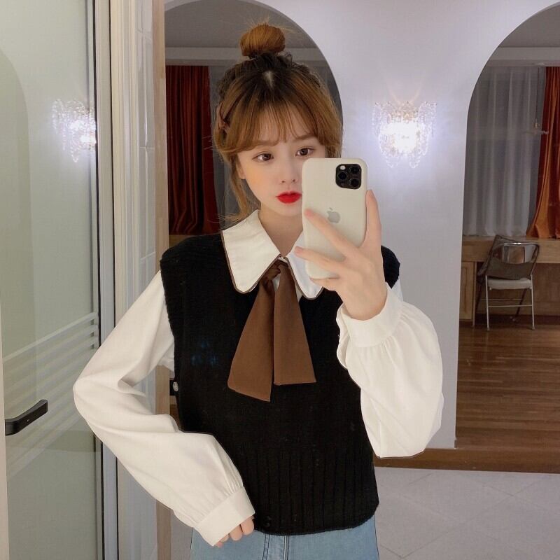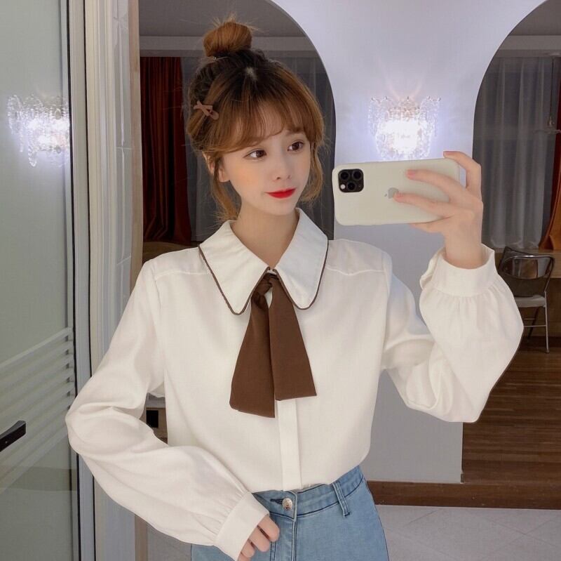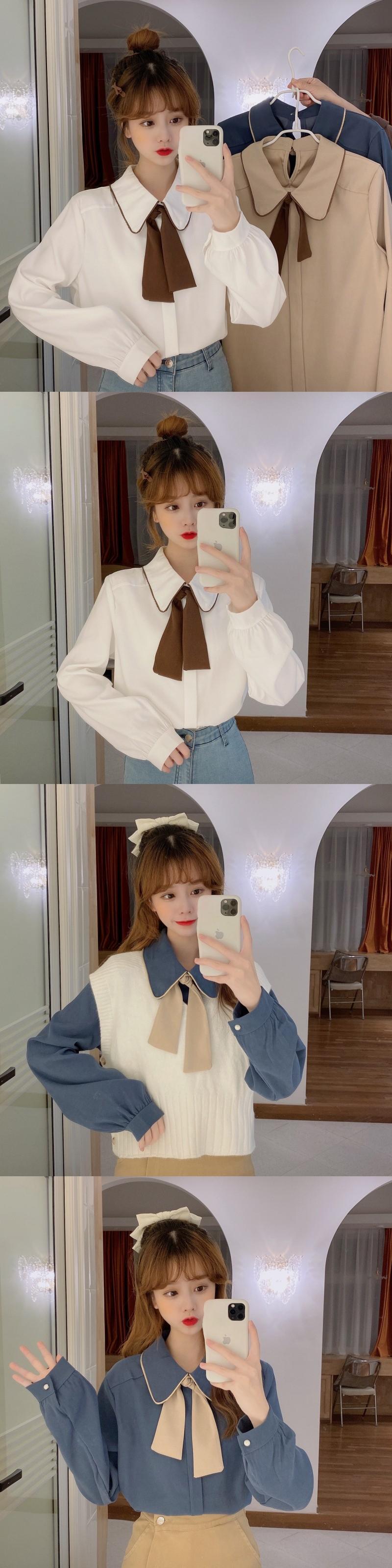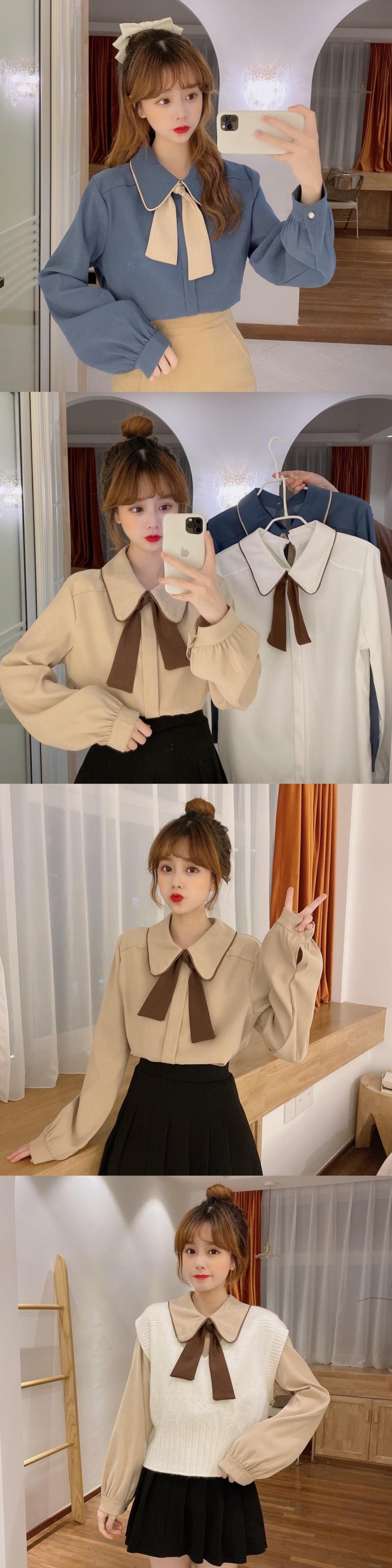 カラーシャツ スプリング韓国ファッション ロング リボン 春物 長袖 SPM69284386114