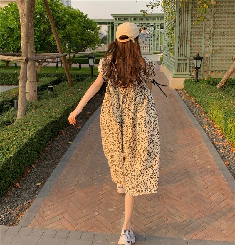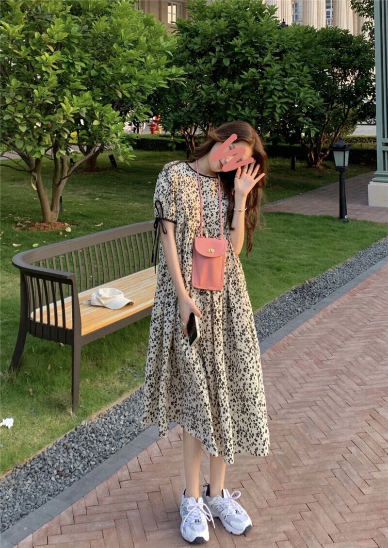 フローラルワンピース夏服スタイルスリーブロングスカート 夏物 花柄 SPM96376510683