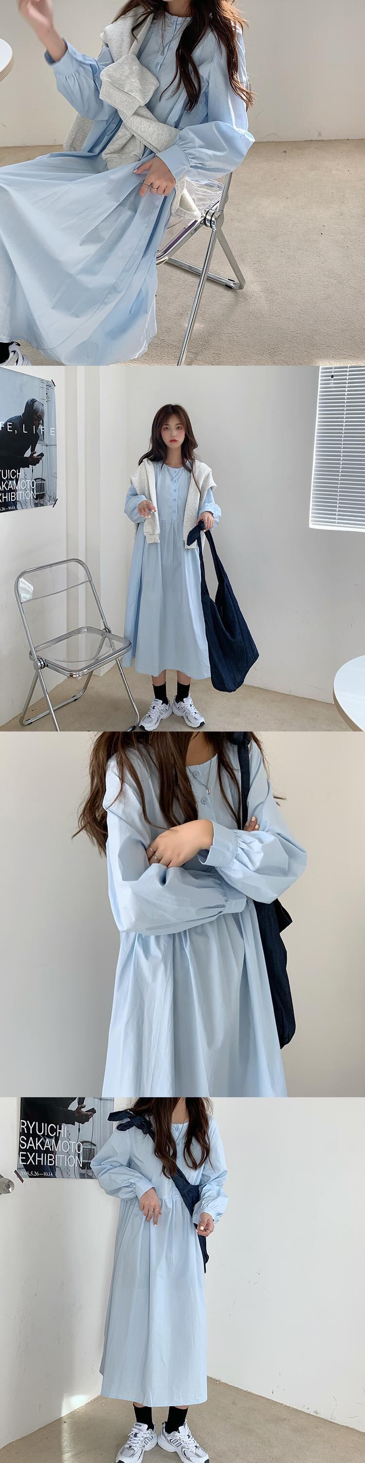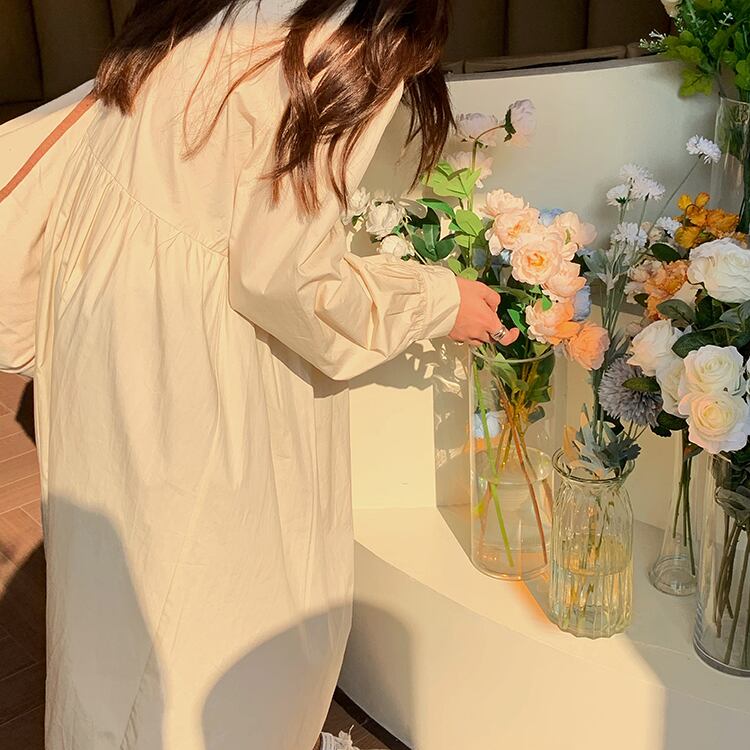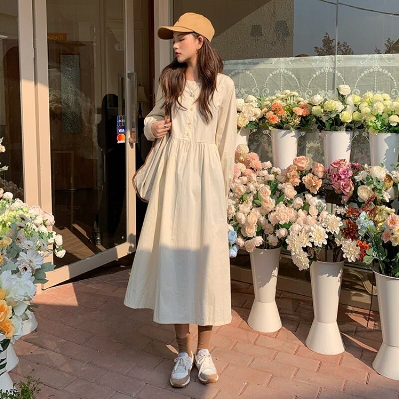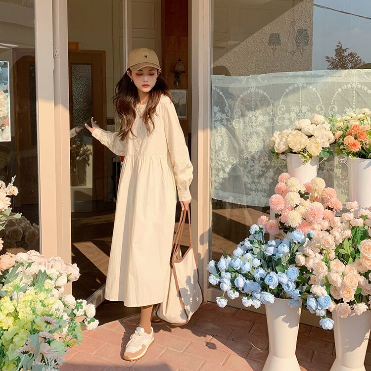 薄手ワンピースレディーススプリング秋物韓国ファッションルーズスカート ロング 春物 オータム スタイル 長袖 ミドル丈 YY38601737082