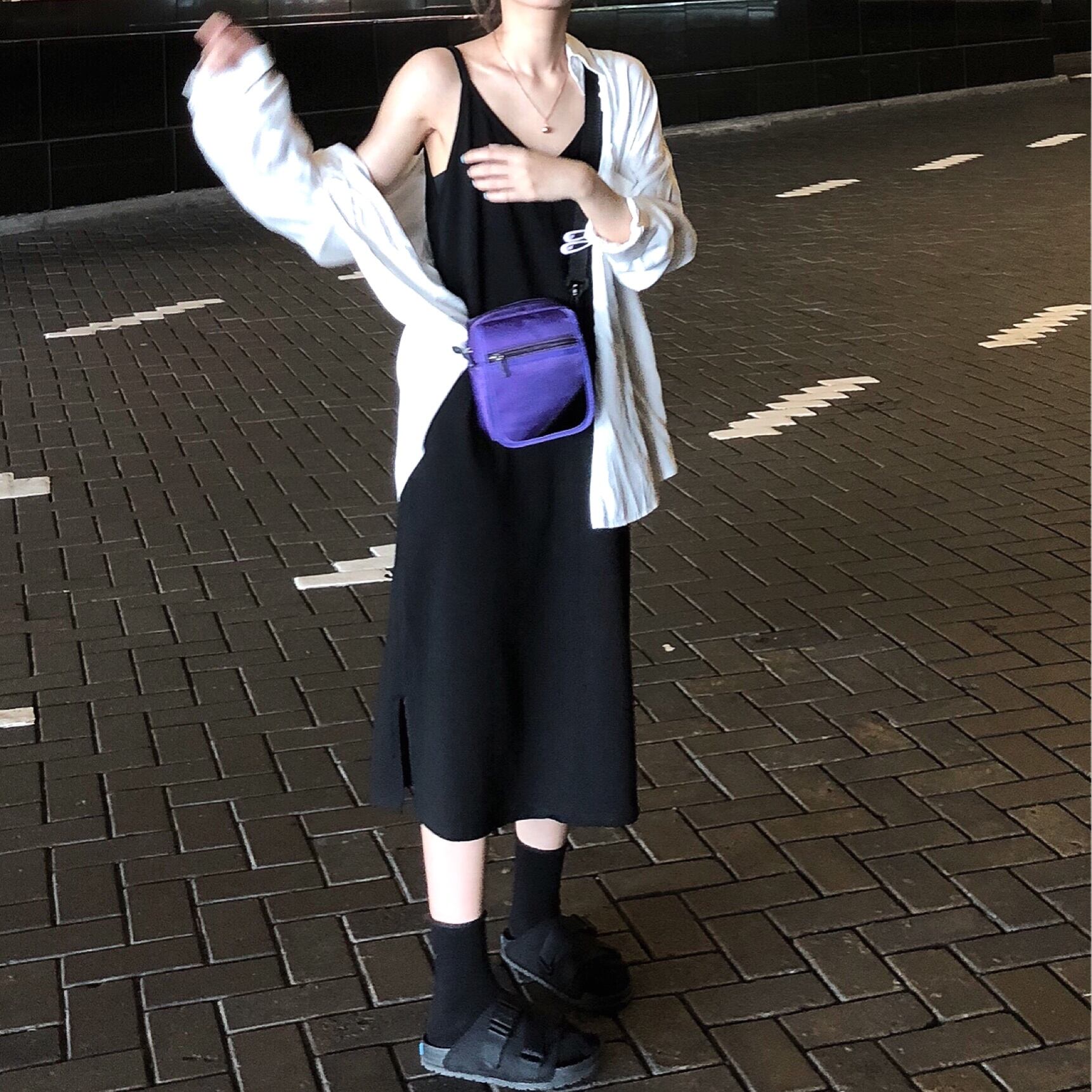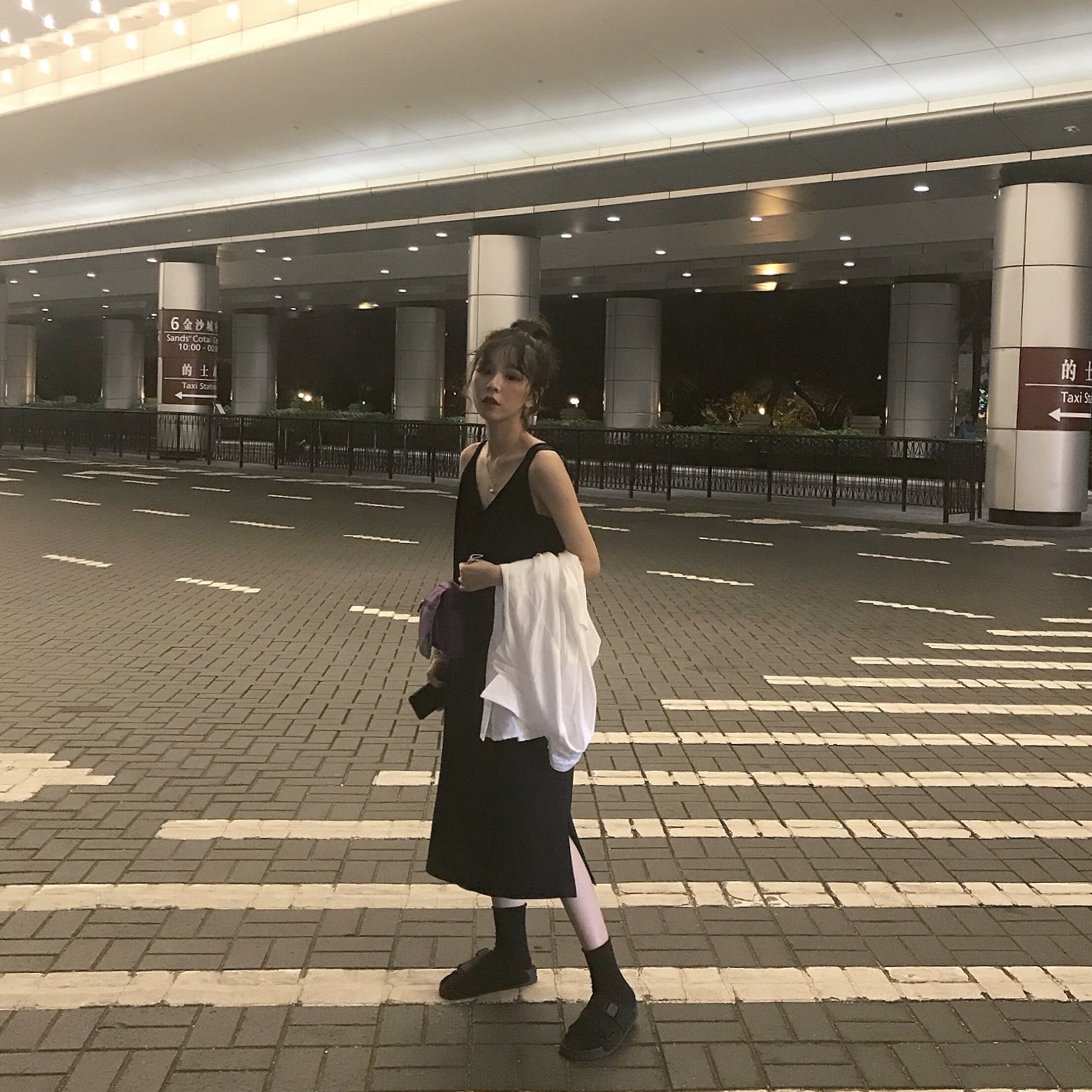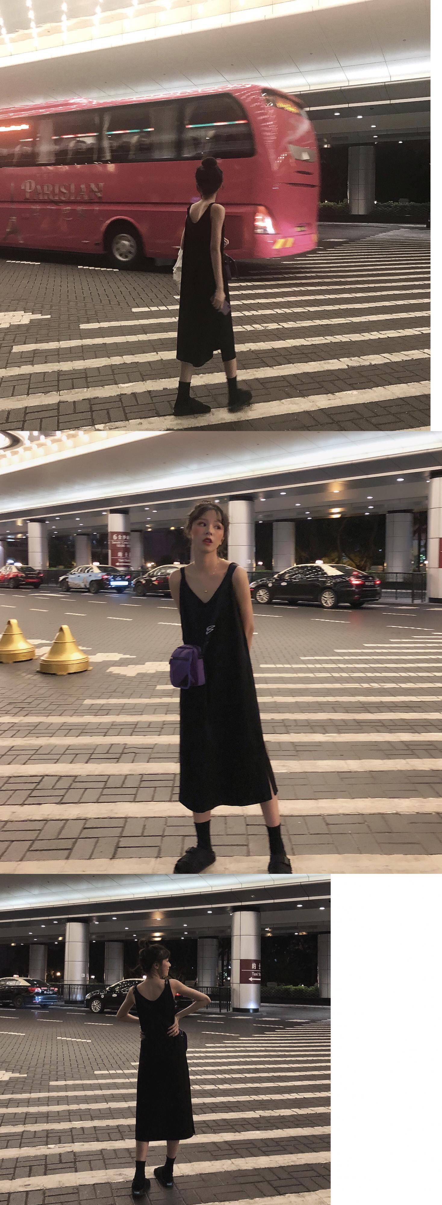 夏服スタイルブラックスカート Vネックレディースルーズスリットロングゆったりワンピース 夏物 YY22878485303