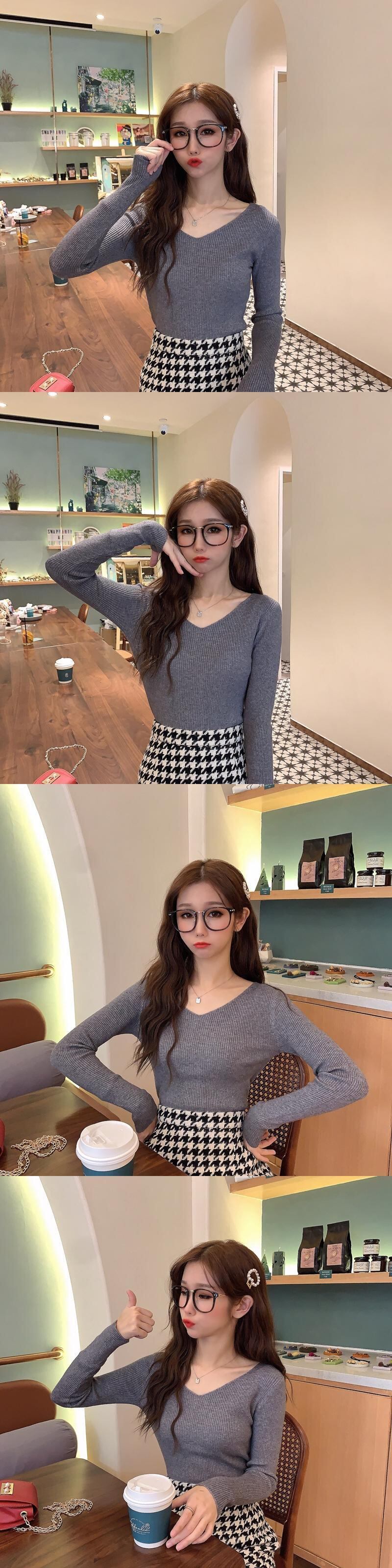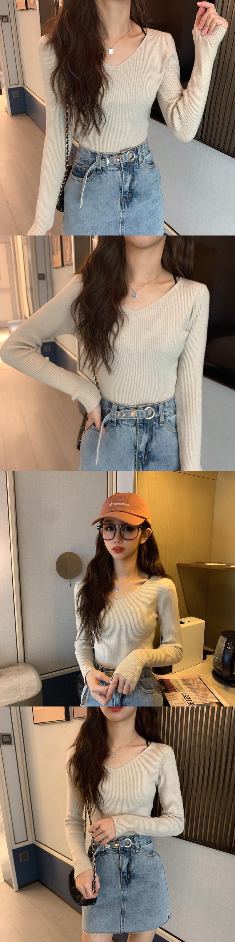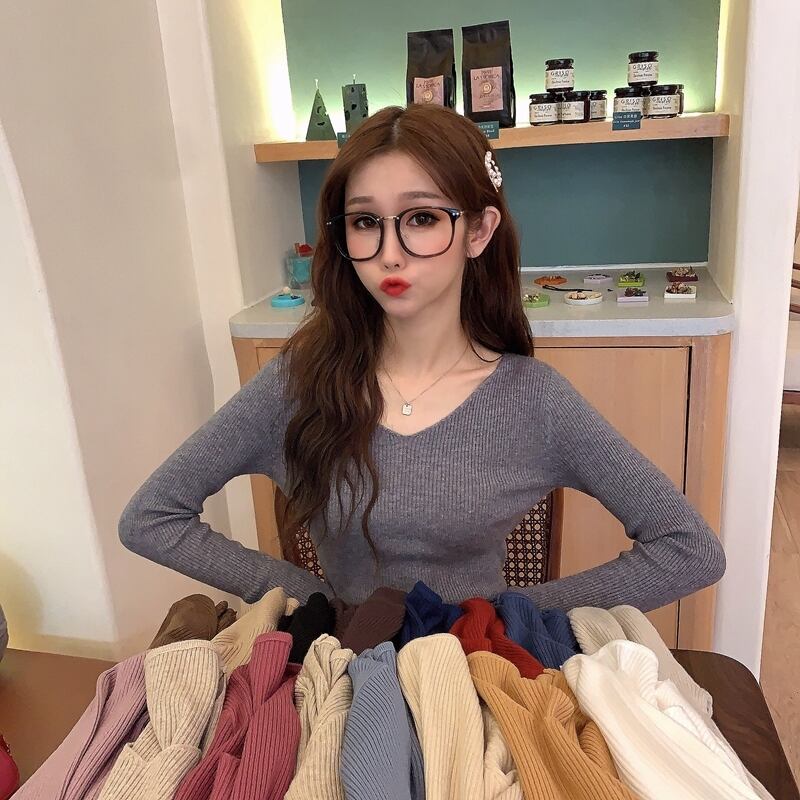 Vネックゆったりシャツ トップス レディース夏服スタイルニットセーター ロング 夏物 長袖 YY96919219496