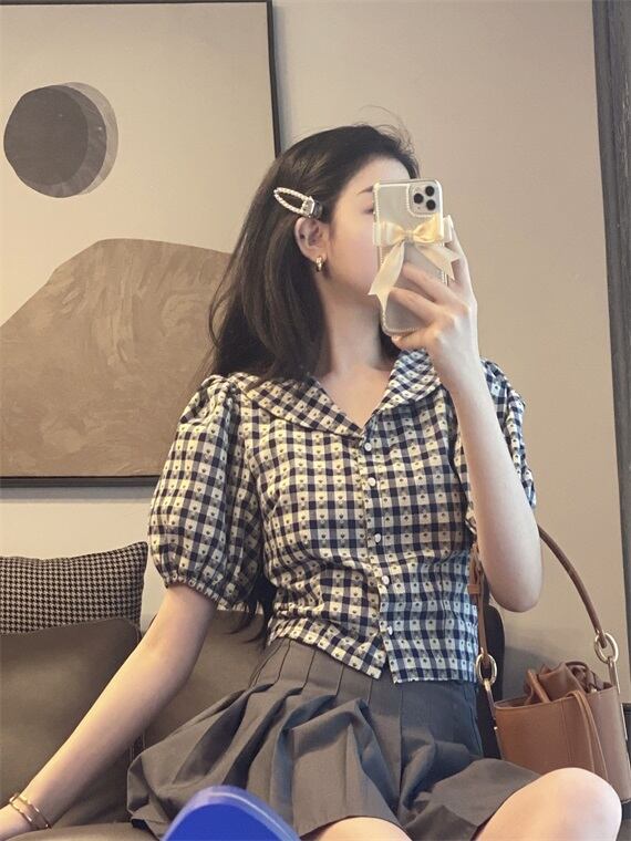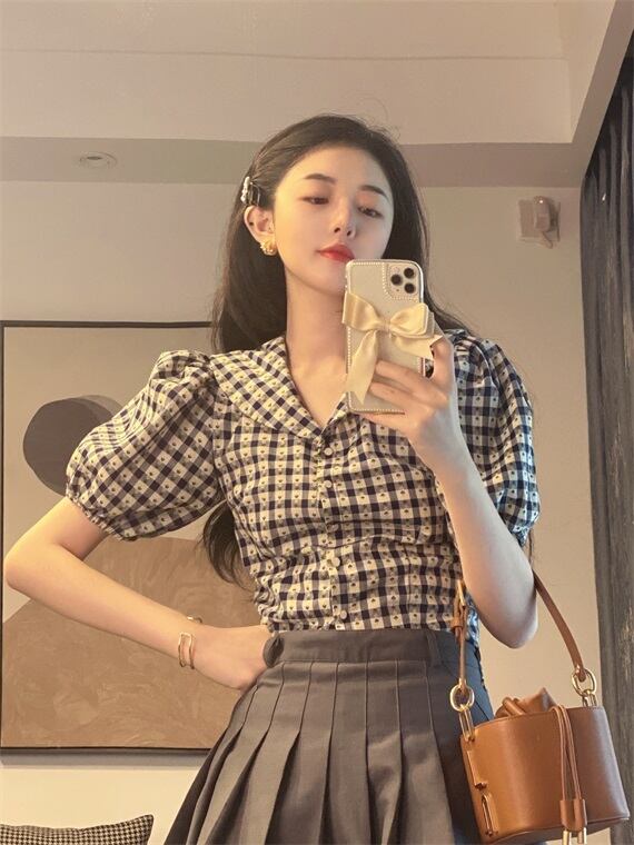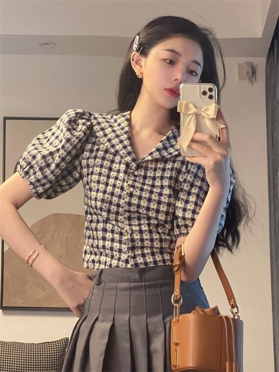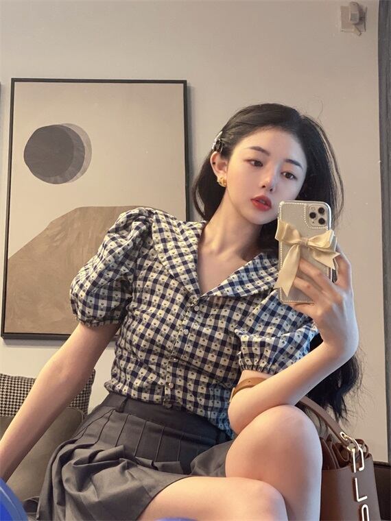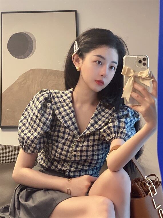 Vネックシャツ レディース夏服韓国ファッショントップス 夏物 スタイル YY22387492203