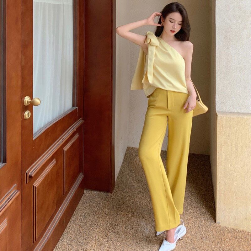 夏服リボンワイドレッグ韓国ファッションカジュアル 夏物 ワイドパンツ YY10026457452