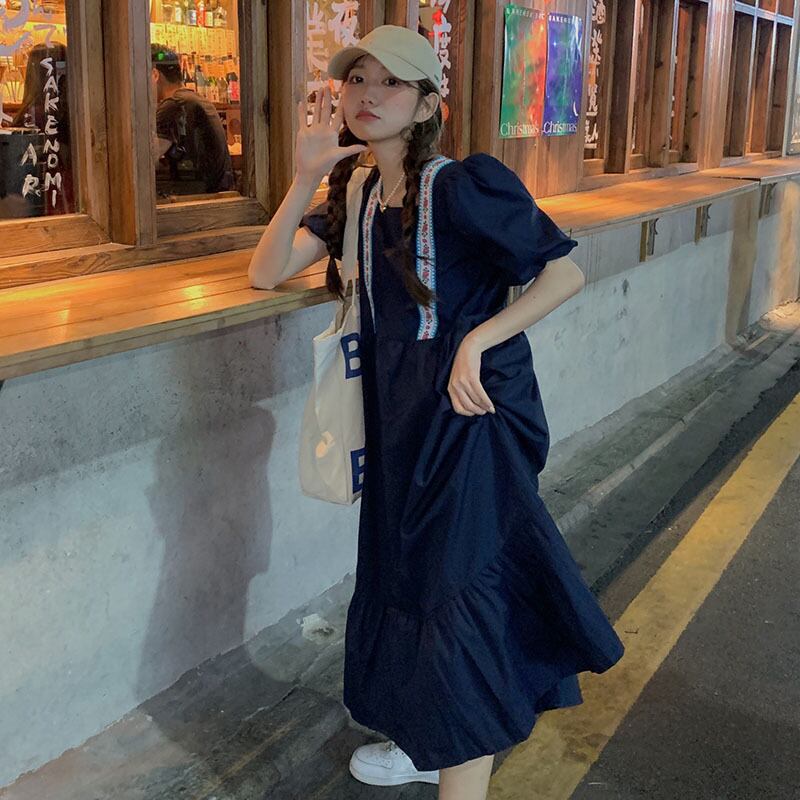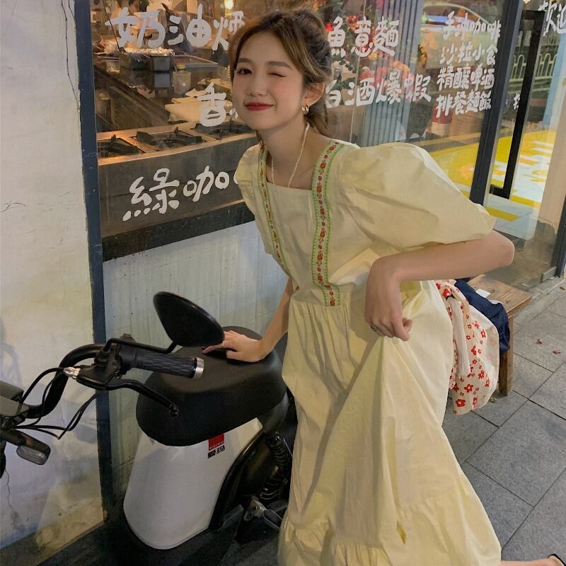 夏服スタンダードエスニックウェストスリーブ半袖ワンピース ショート レトロ ハーフスリーブ 夏物 スクウェア ウエスト ミドル丈 YY26806407562