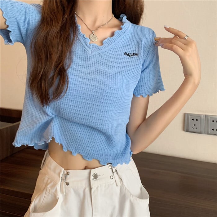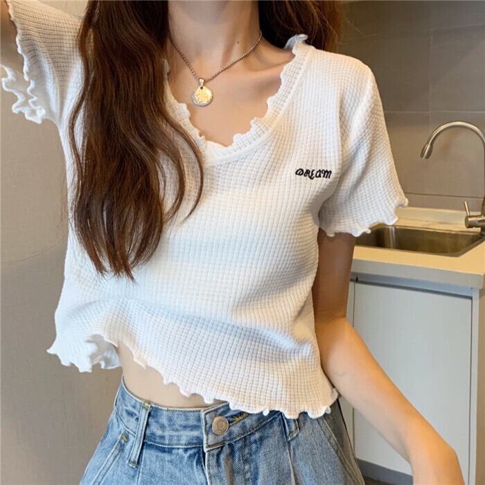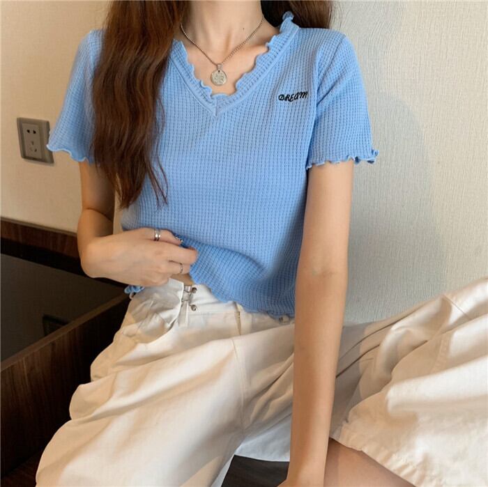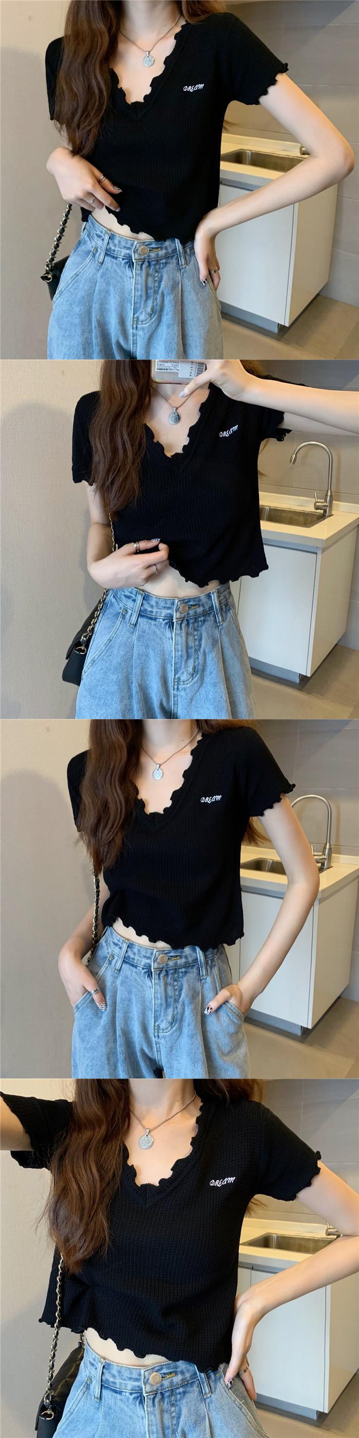 夏服スリム薄手スタイルVネックショートセーター トップス 夏物 YY49418957399