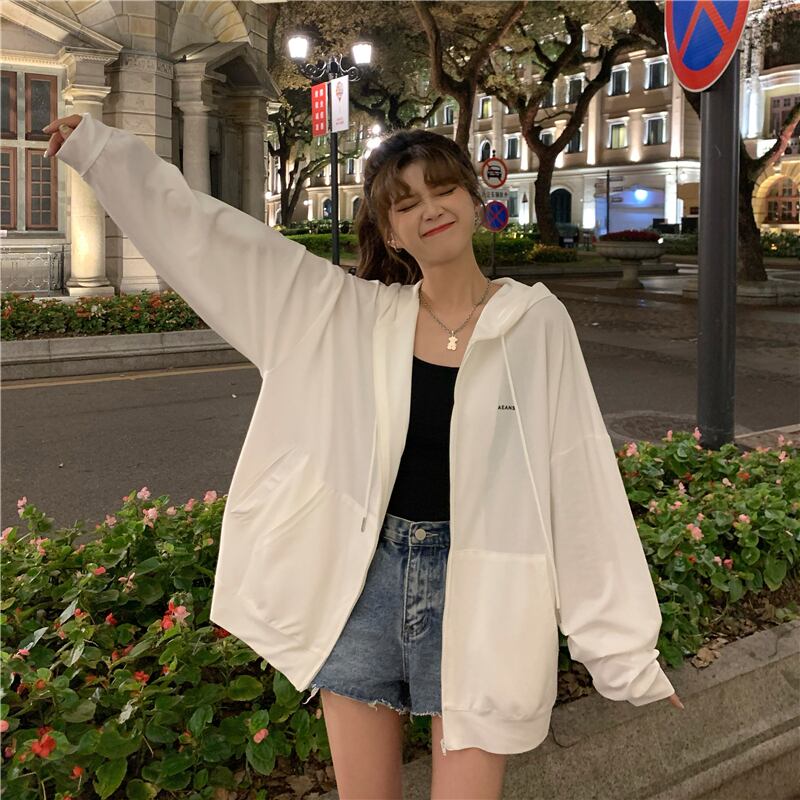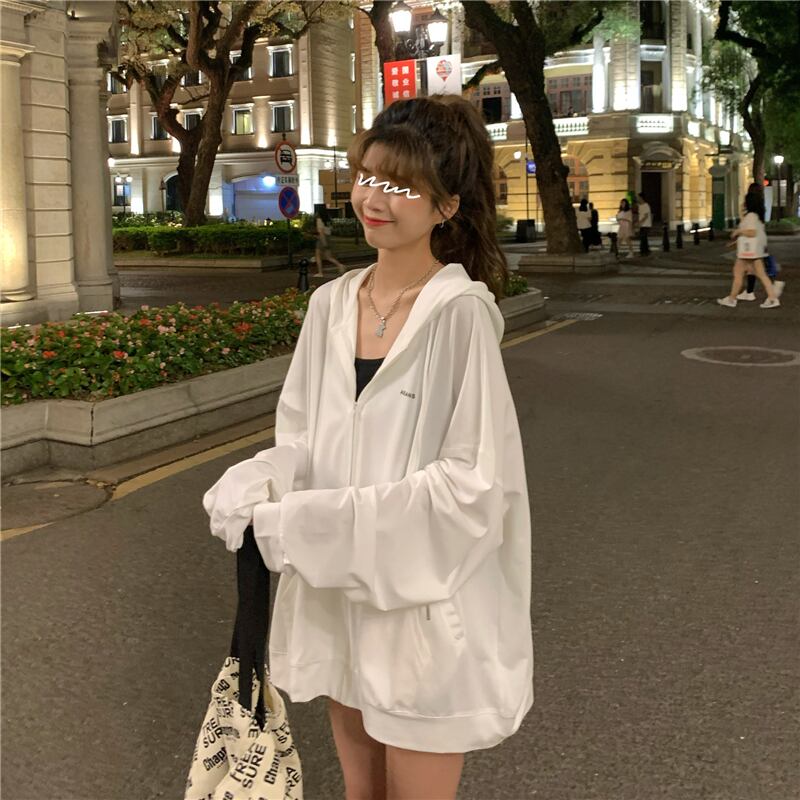 薄手コート レディース夏服ルーズフードロングホワイト 長袖 夏物 ミドル丈 YY99431419053