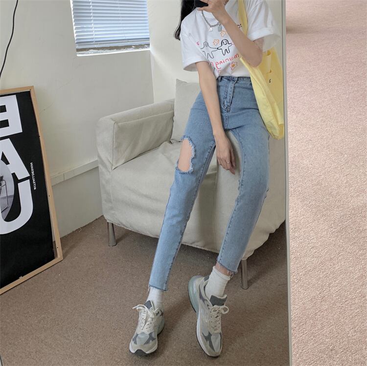 ジーンズ 夏服韓国ファッションハイウェストパンツ 夏物 スタイル ウエスト YY16786713567