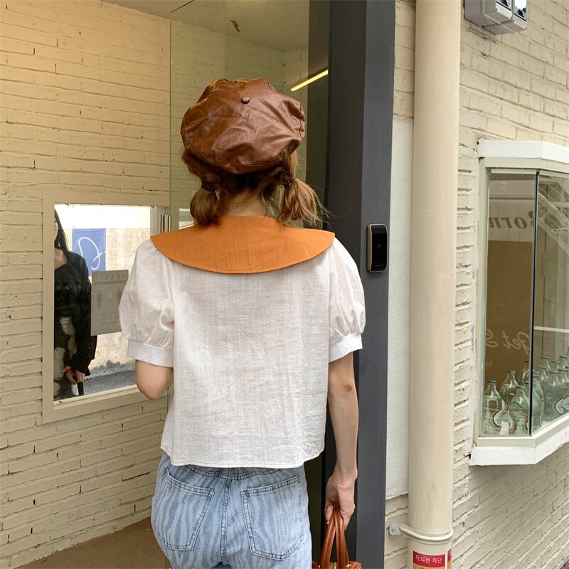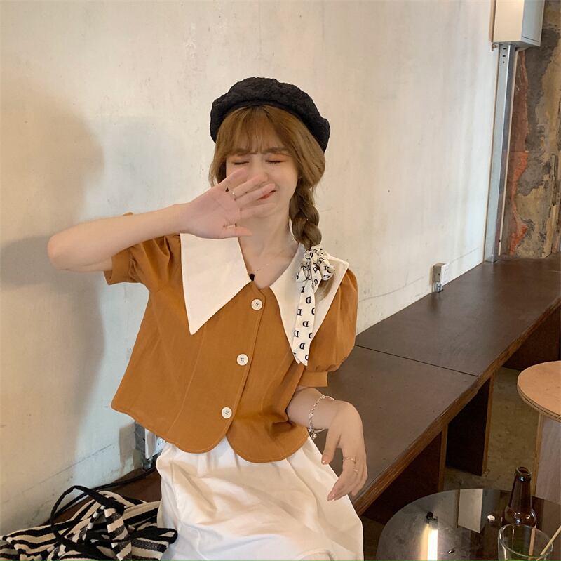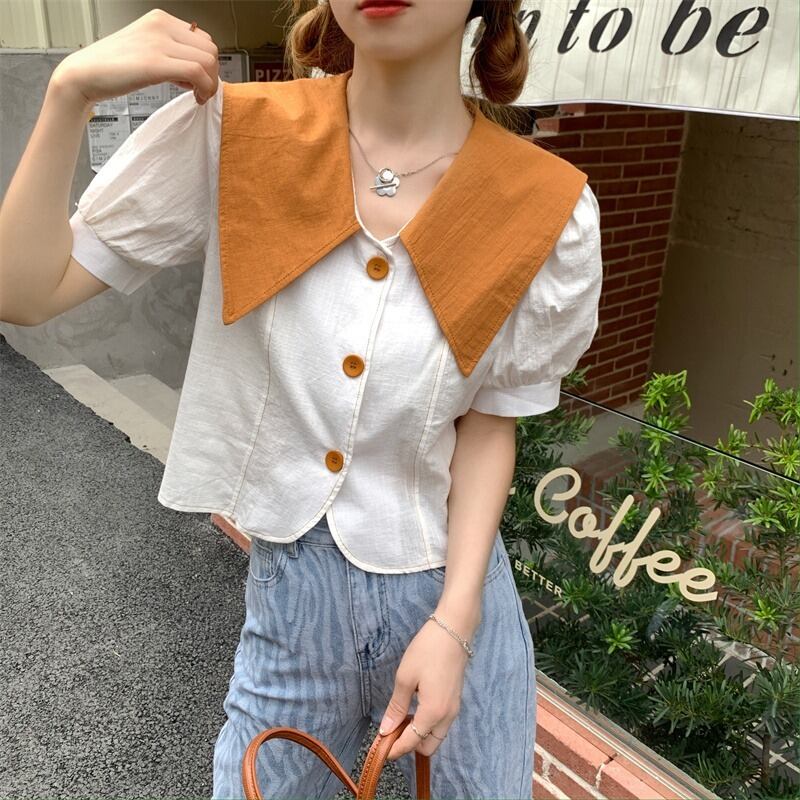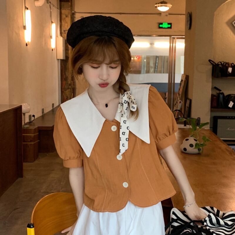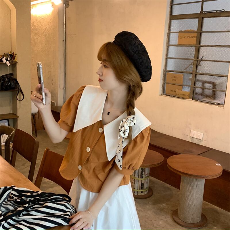 カラーブラウス 夏服韓国ファッションスタイルスリーブシャツ 大人ガーリー スウィート キュート カジュアル 夏物 YY47145894403