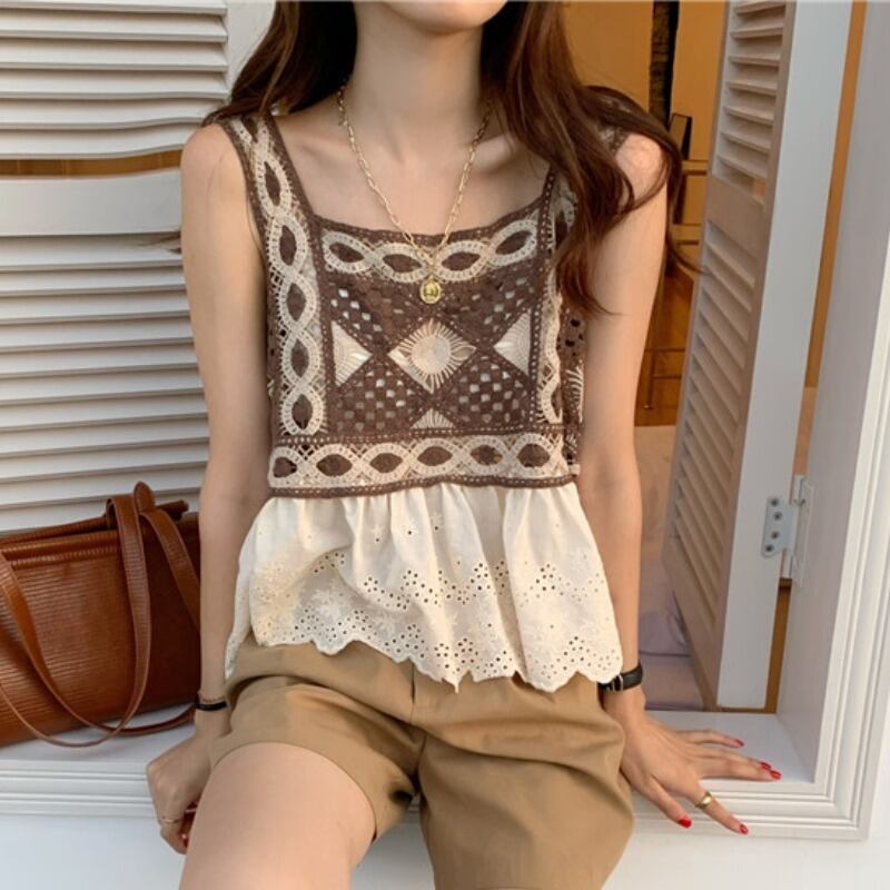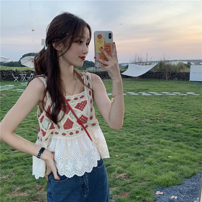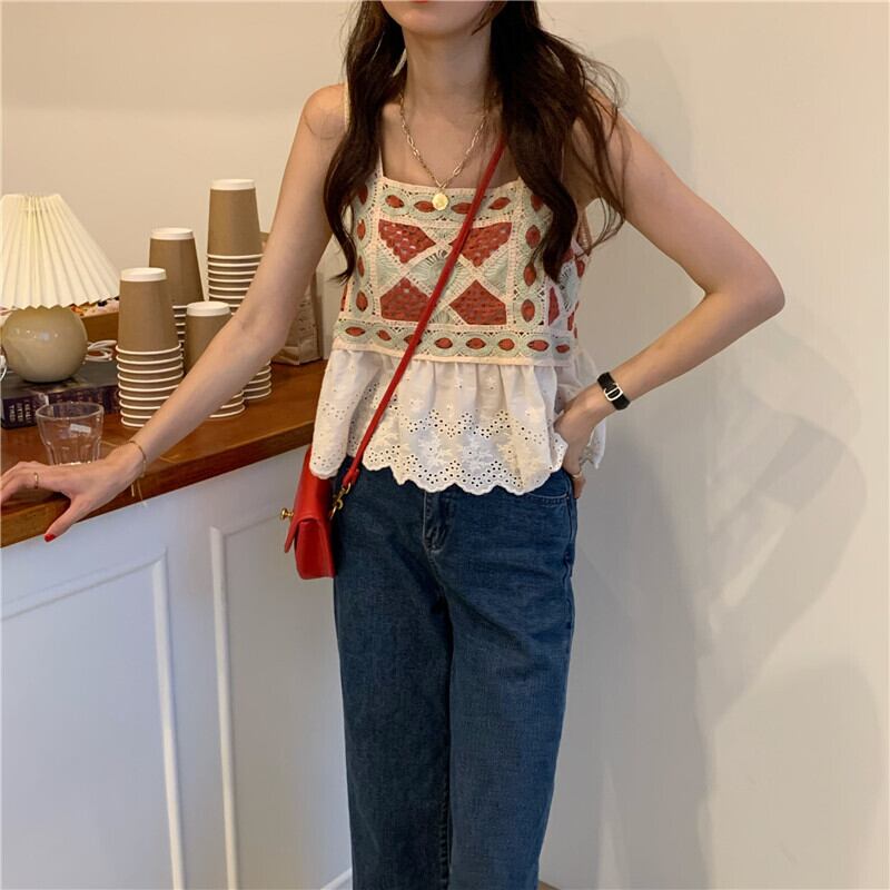 スタンダードスタイルルーズ薄手ノースリーブトップス レトロ YY97774723334