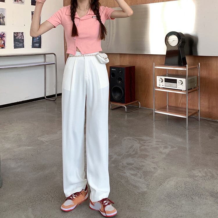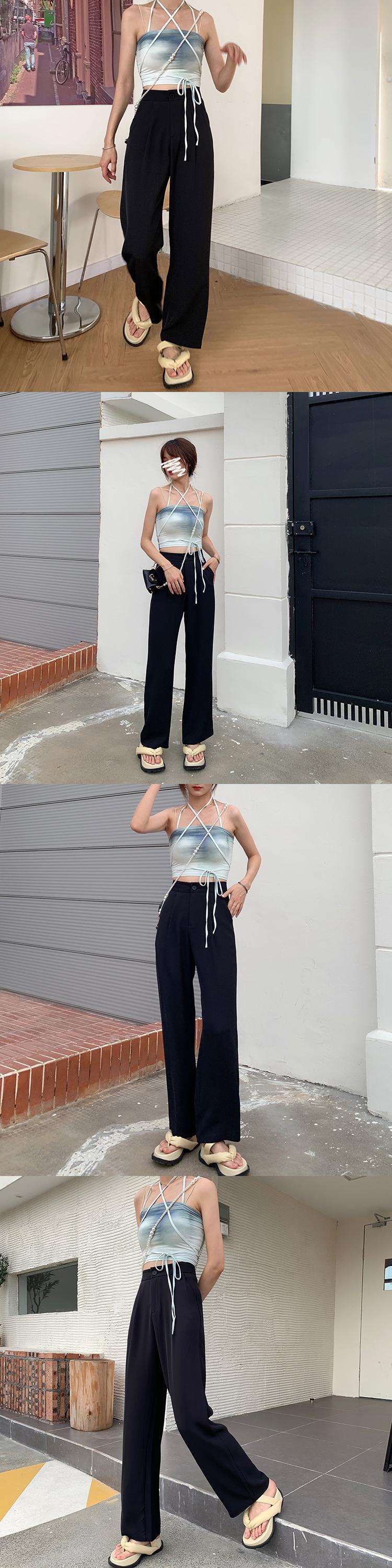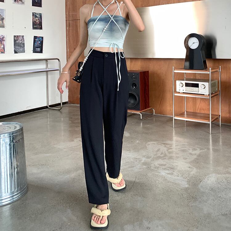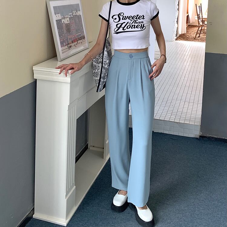 パンツ 夏服薄手韓国ファッションハイウェストウェストスタンダードカジュアル レトロ 夏物 スタイル ウエスト YY6723137465