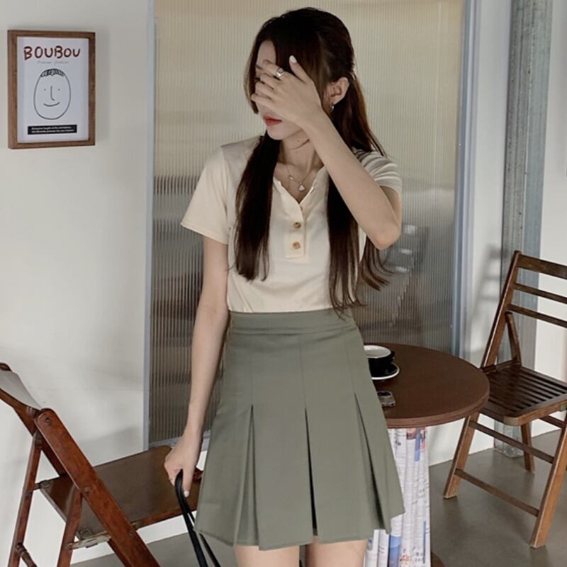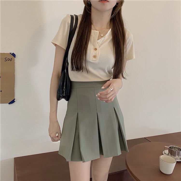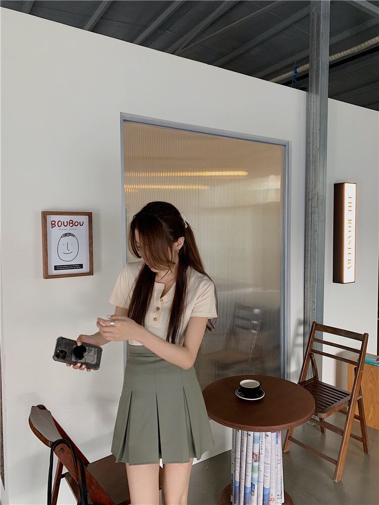 夏服スタンダードスタイルスリムルーズ半袖スリーブTシャツウェストプリーツAラインスカート ショート レトロ ハーフスリーブ 夏物 ウエスト YY37128260040