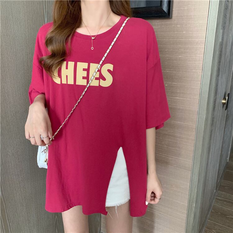 Tシャツレディース夏服ルーズプリントレッドジャケット 夏物 スタイル ミドル丈 YY80575524278
