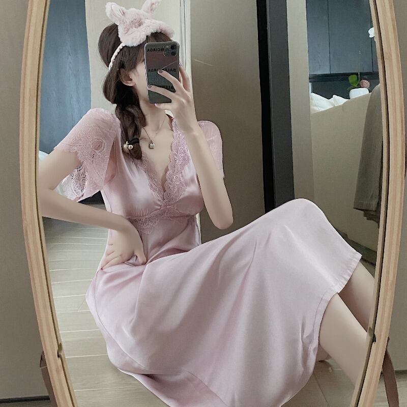 スプリング夏服ロングワンピース薄手Vネックレース 春物 夏物 YY66371462598