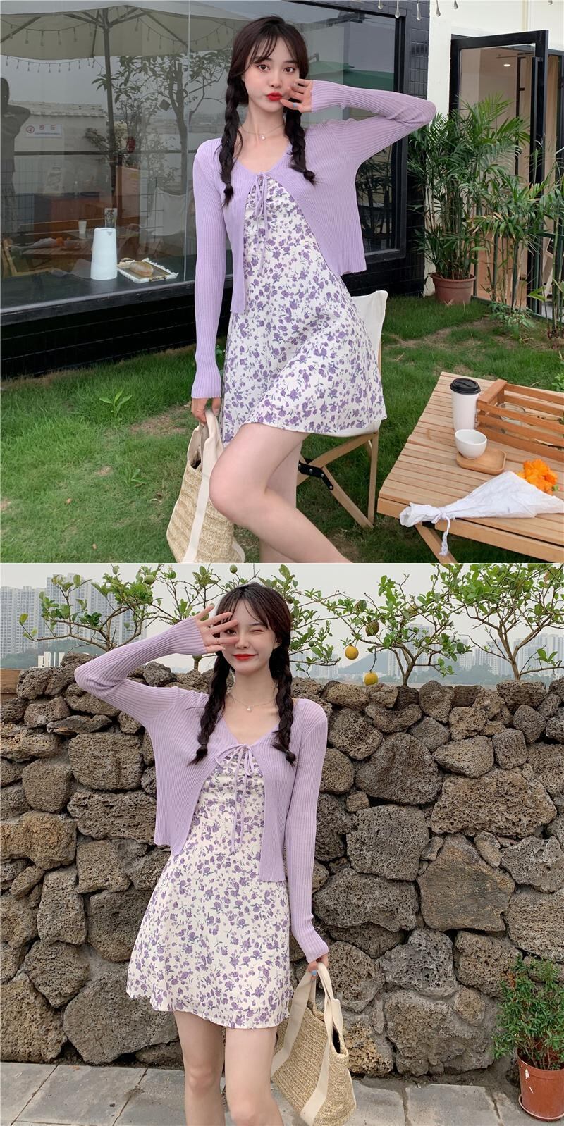 フローラルスカート ワンピース夏服スタイル 大人ガーリー スウィート キュート カジュアル 夏物 花柄 パープル YY79651107068