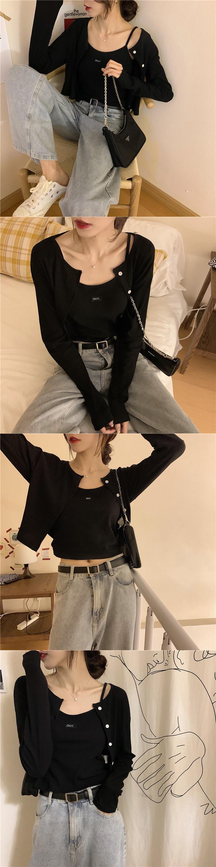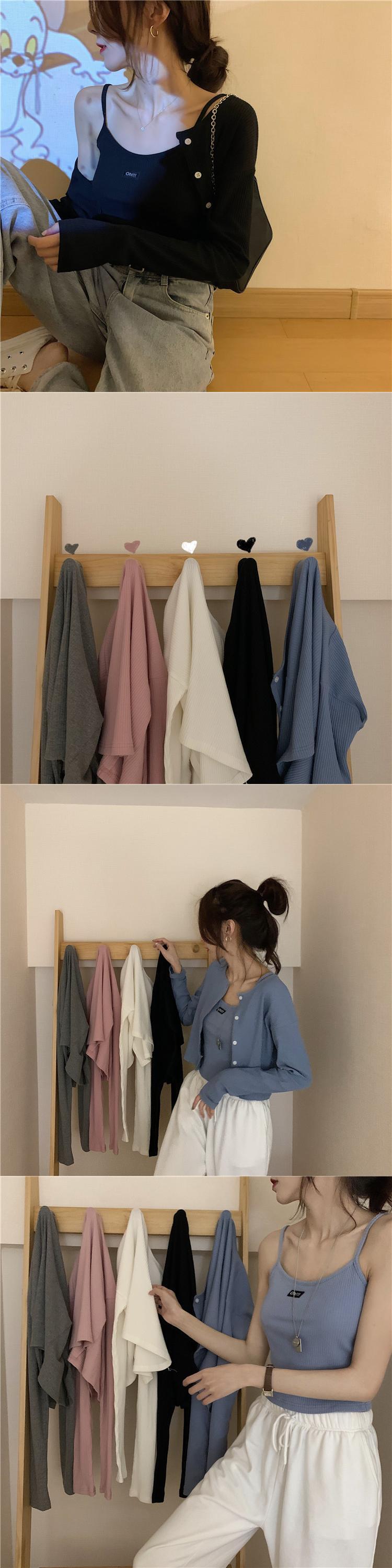 秋物ラウンドネックショートルーズ薄手カーディガン ロング オータム Oネック 長袖 YY75321918651