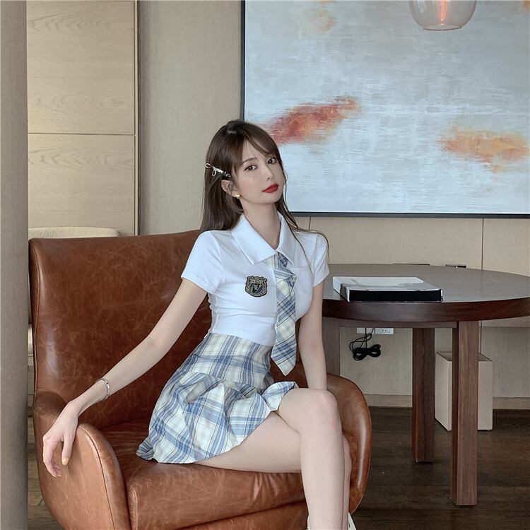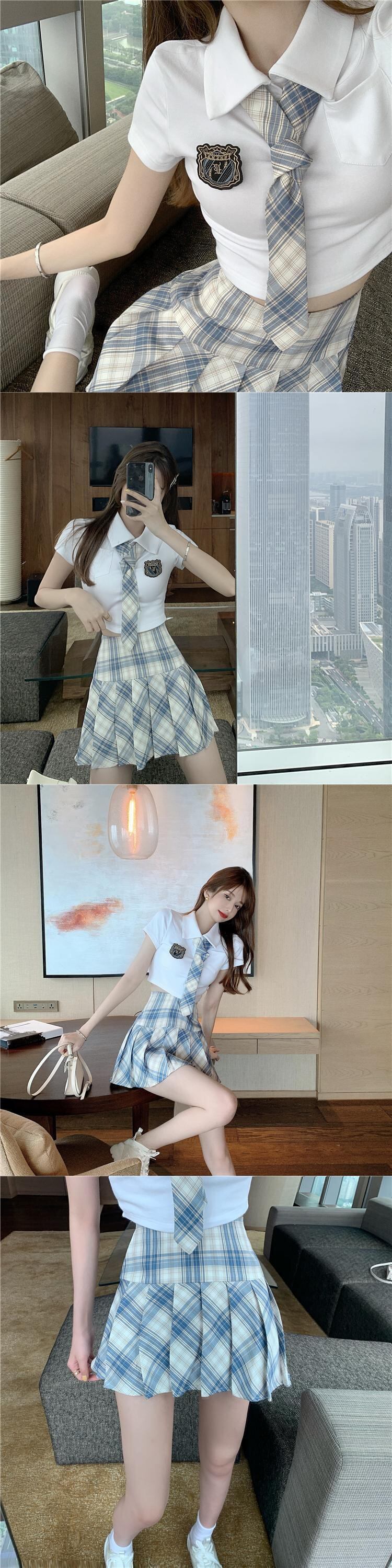 色:ネクタイ付きトップ,短いスカート
