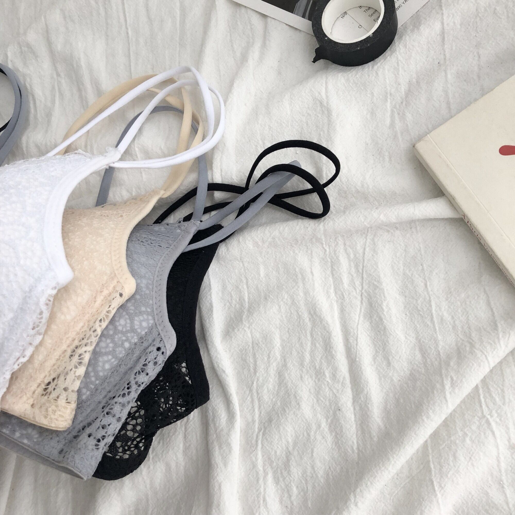 夏服トライアングルバックブラ 薄手リング レース レッド 夏物 指輪 YY47210048761