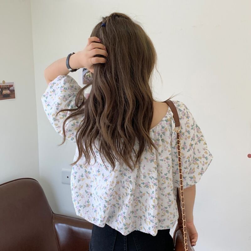 シフォンショートスリーブTシャツ夏服フローラルトップス 夏物 花柄 YY25233426861