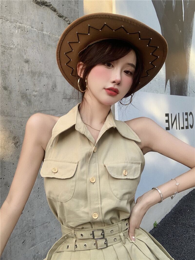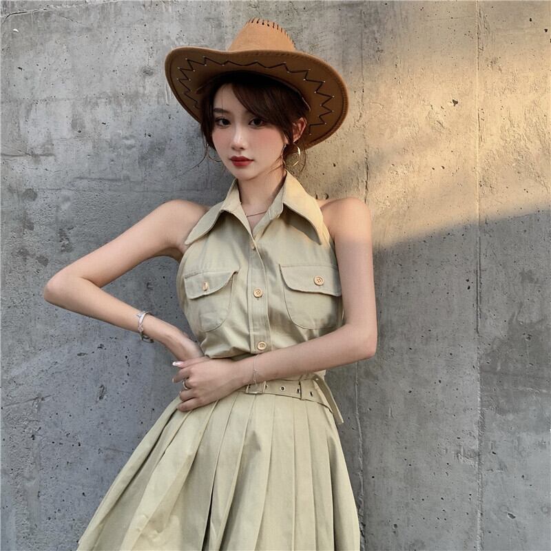カジュアルレディース夏服ホルタープリーツスカート 夏物 ワンナンバー94764971847