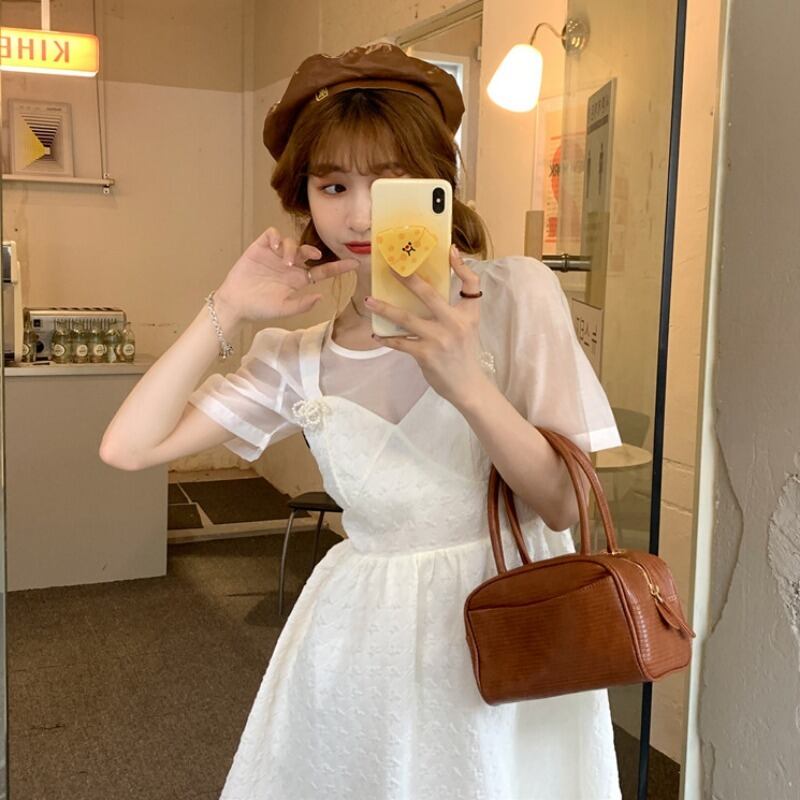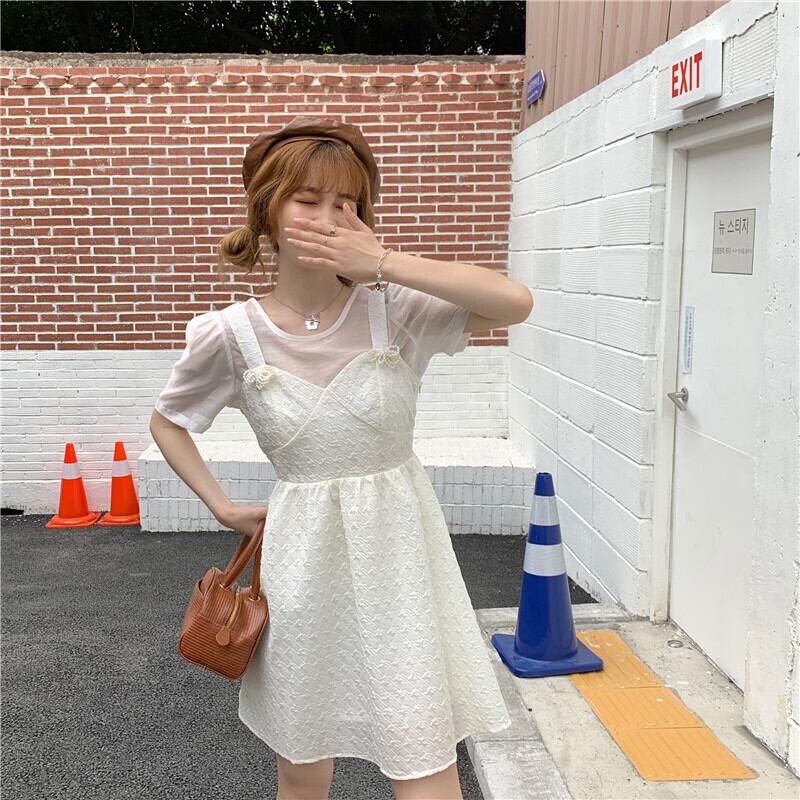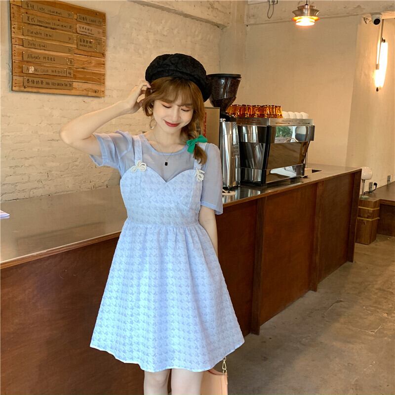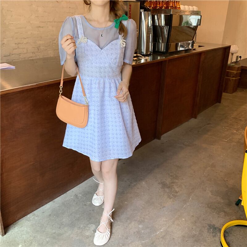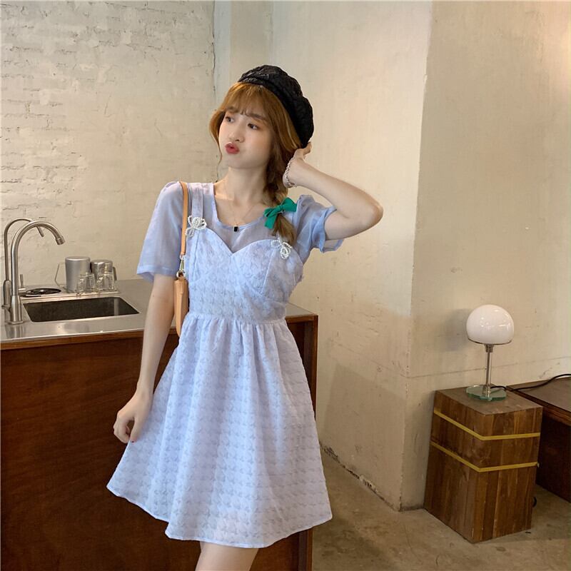 ワンピース夏服ハイウェストウェストAラインスカート ショート 大人ガーリー スウィート キュート カジュアル 夏物 ウエスト ワンナンバー49365999318