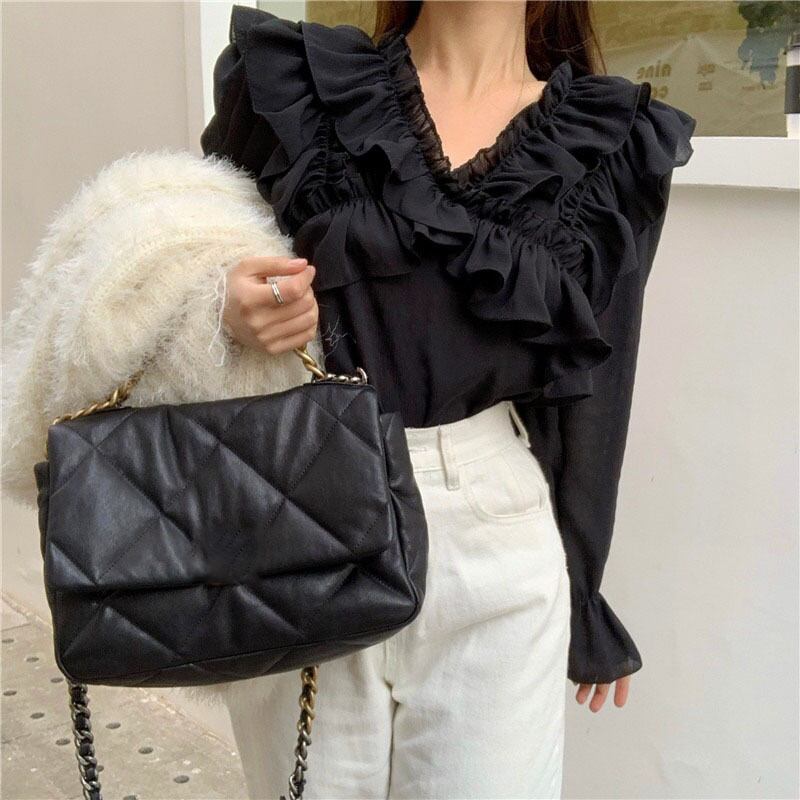 シフォンシャツ トップス スプリング夏服ホワイトVネック ロング 春物 夏物 長袖 YY22496391406