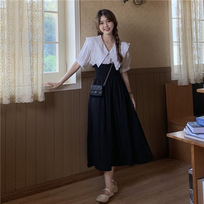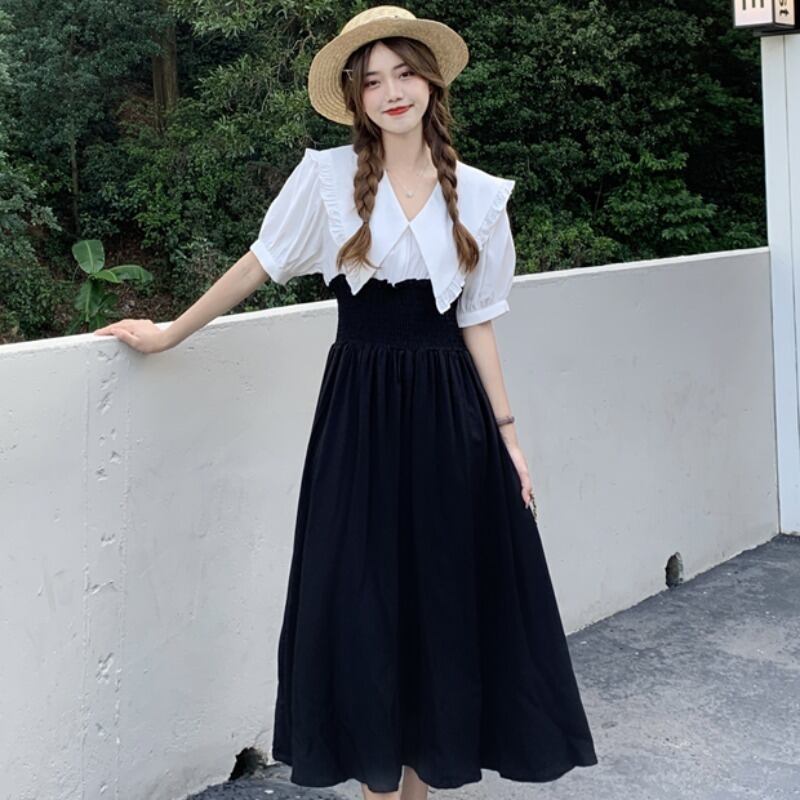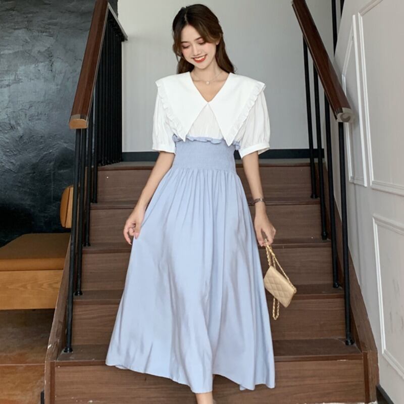 夏服スカート レディース韓国ファッションカラーミニ ワンピースワンピース 大人ガーリー スウィート キュート カジュアル 夏物 ステッチ スタイル ミドル丈 YY43868128223