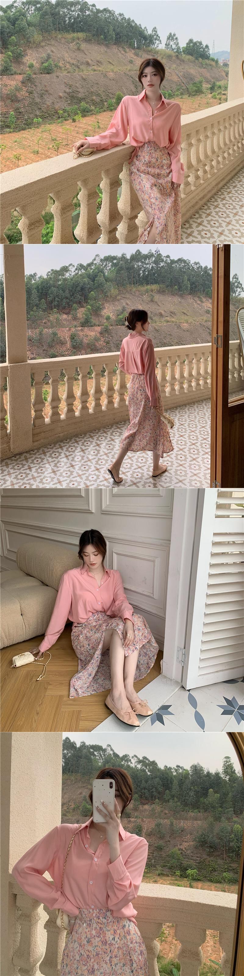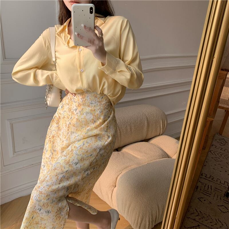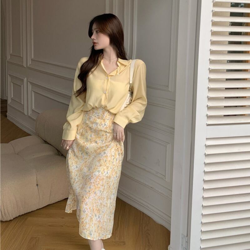 夏服スタイル韓国ファッション薄手シャツ フローラルAラインスカート レディース 夏物 花柄 YY20358562744