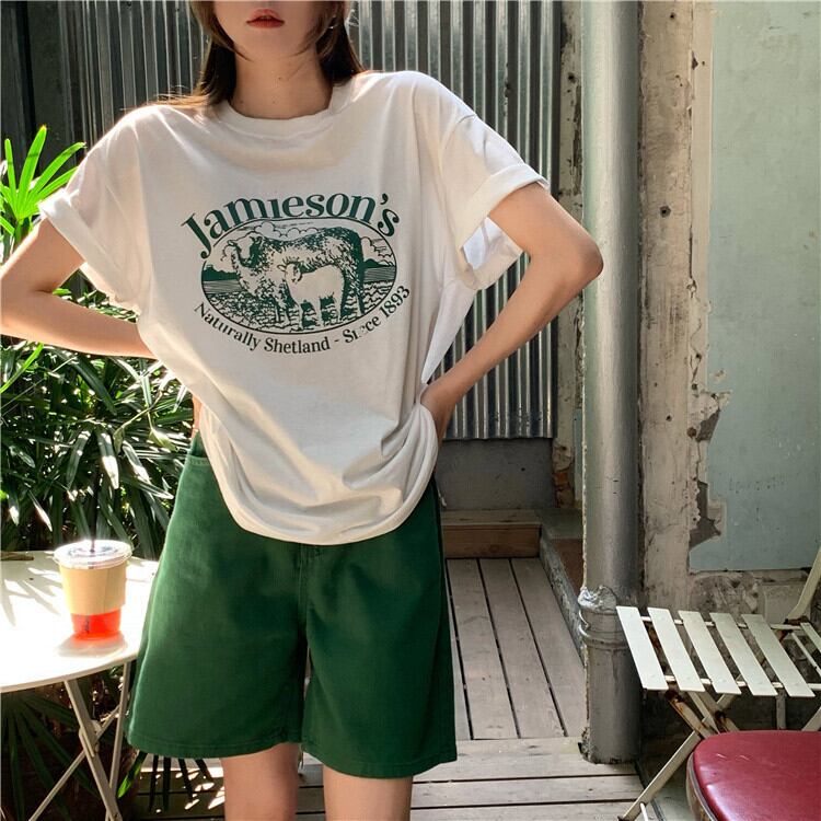 スタンダードTシャツ夏服プリントヴィンテージブラウス レトロ 夏物 ビンテージ YY45003338929