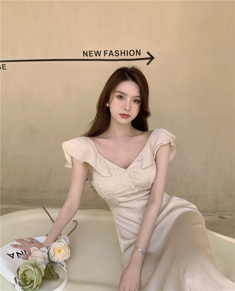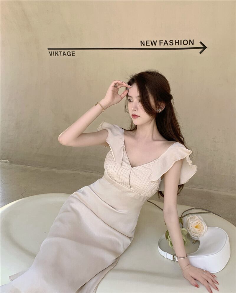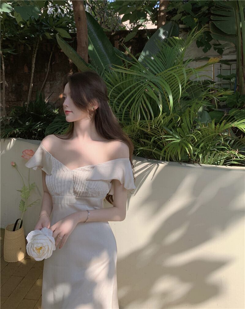 ワンショルダーワンピース夏服スカート ウェスト エレガント 夏物 ウエスト ミドル丈 YY84480696442