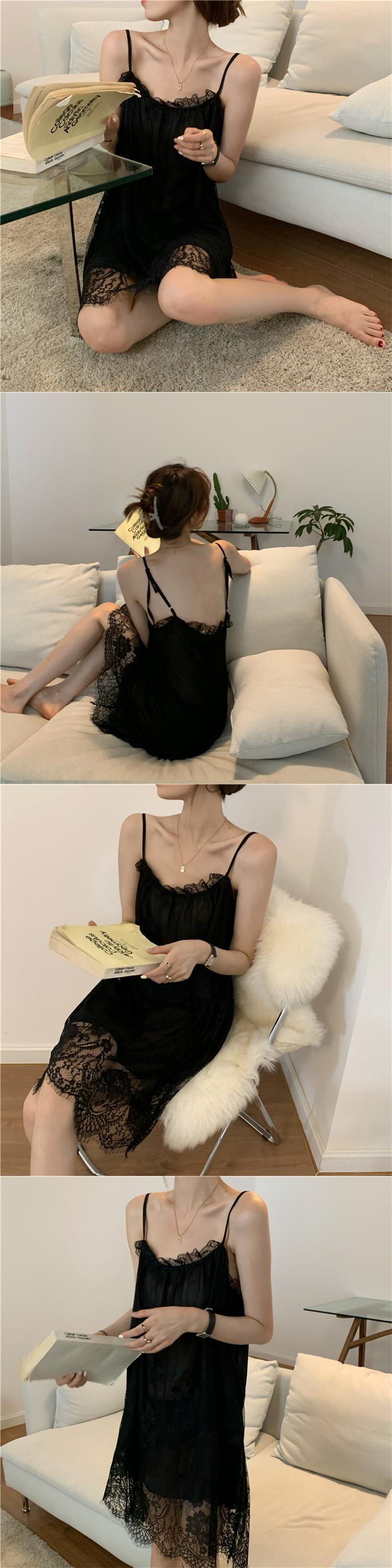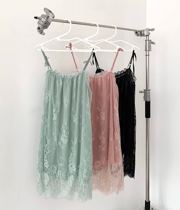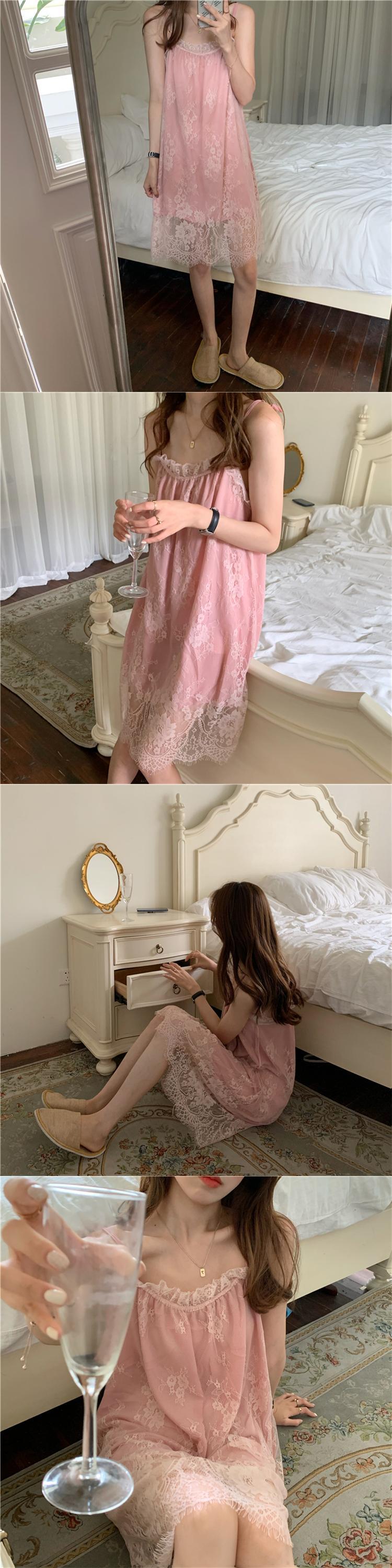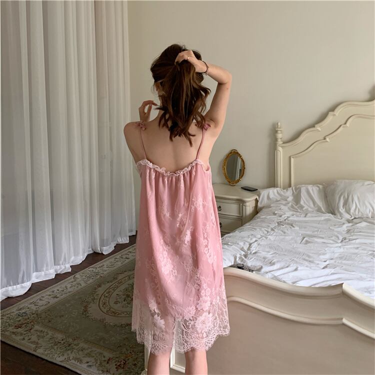 レディース夏服Vネックストラップレススカート ルーズレース ピンク 夏物 ワンピース YY49540938574