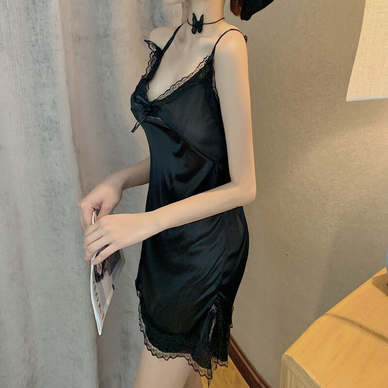 ブラックレースサイドワンピースレディース夏服薄手バック 夏物 シルク YY31960712782