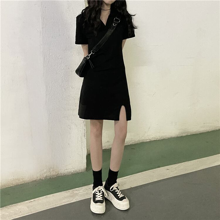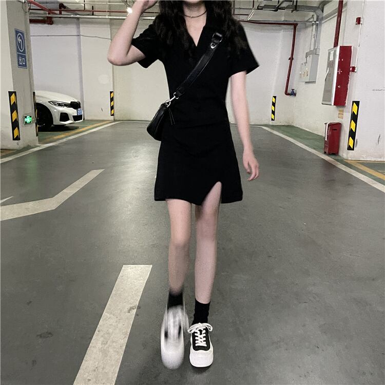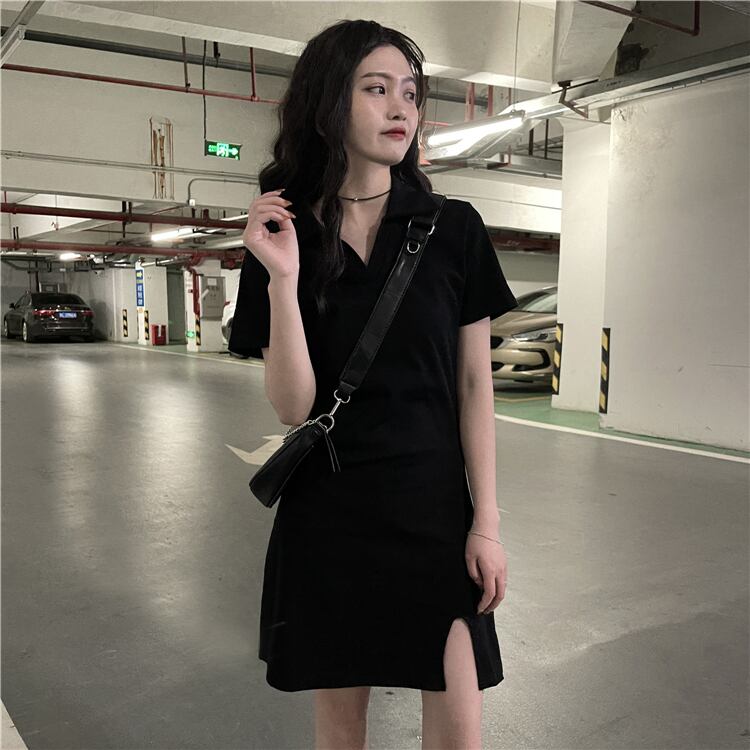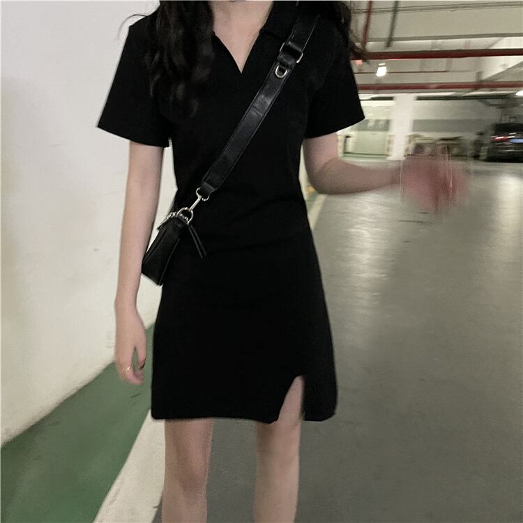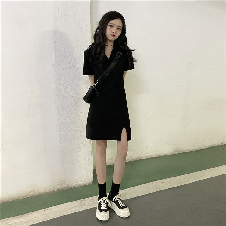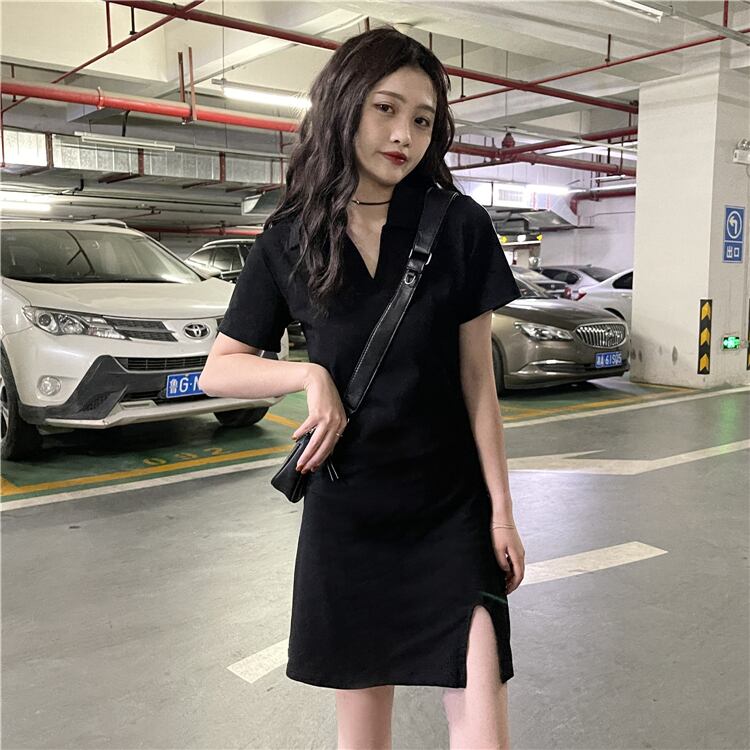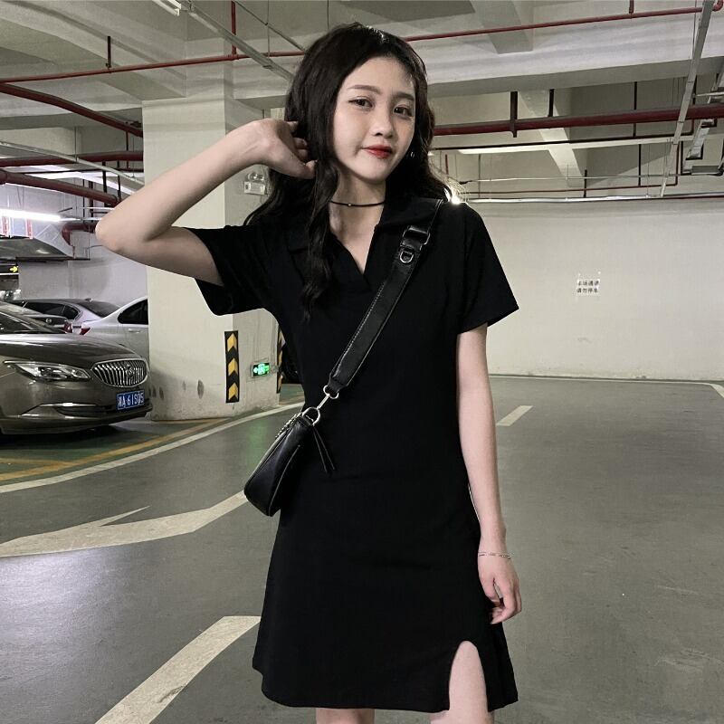 夏服スタイルスタンダードカラーゆったりブラックワンピースレディース レトロ 夏物 YY51635967203