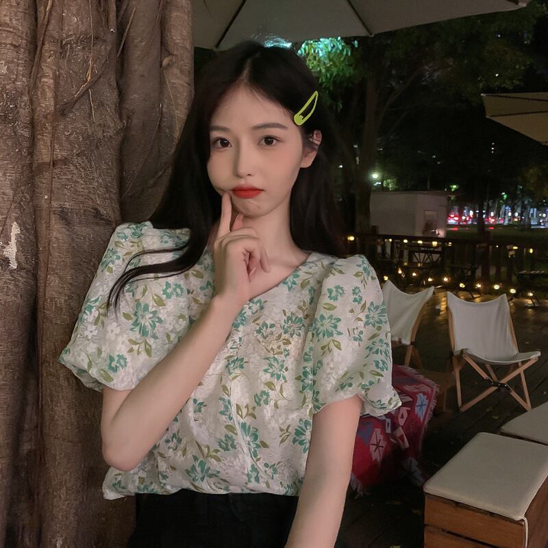 トップス 夏服韓国ファッションフローラルVネック薄手シャツ レディース 夏物 花柄 YY4940003094