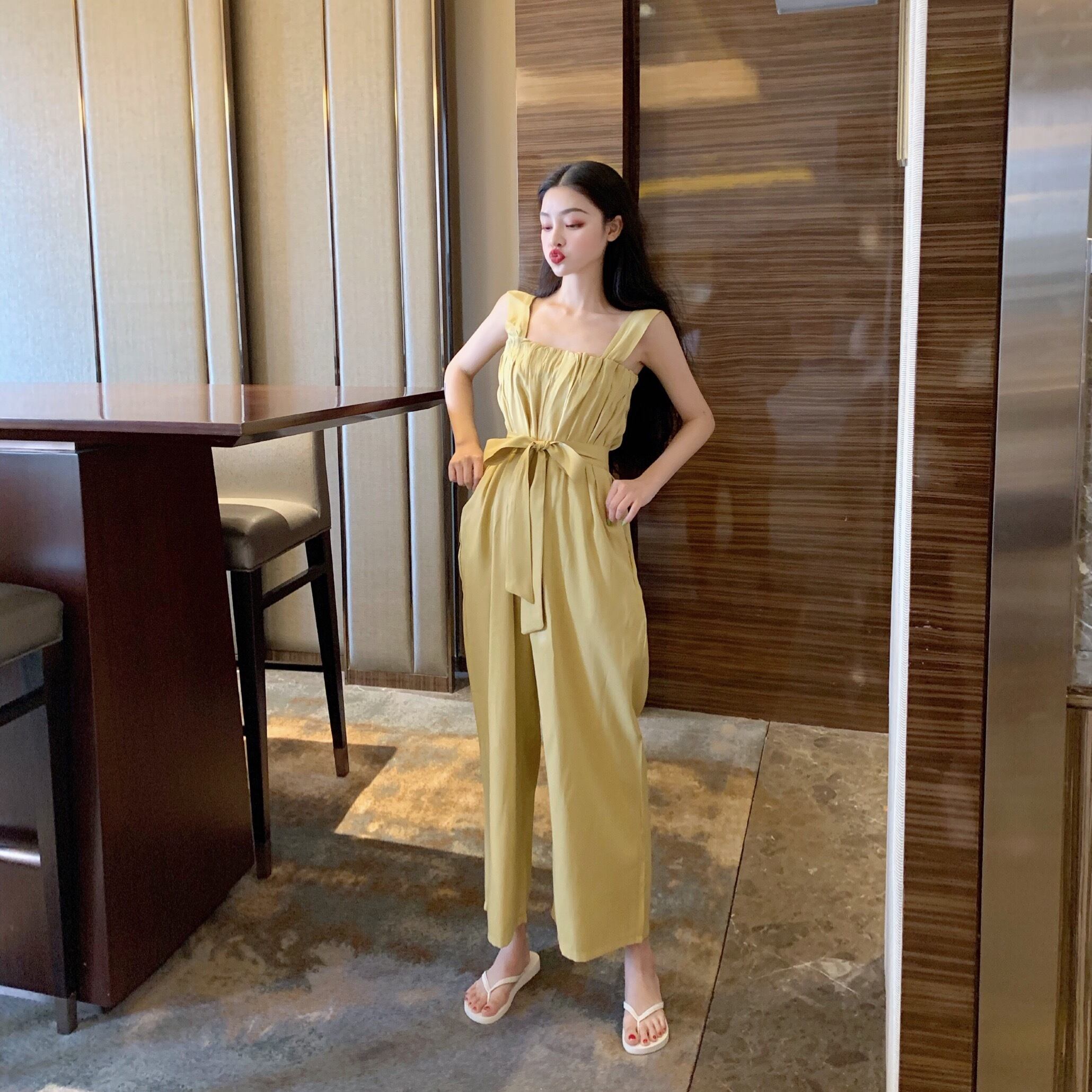 レディース夏服スタンダードストラップ ロング薄手ジャンプスーツ オールインワン レトロ 夏物 ヨーロピアン YY87774152728