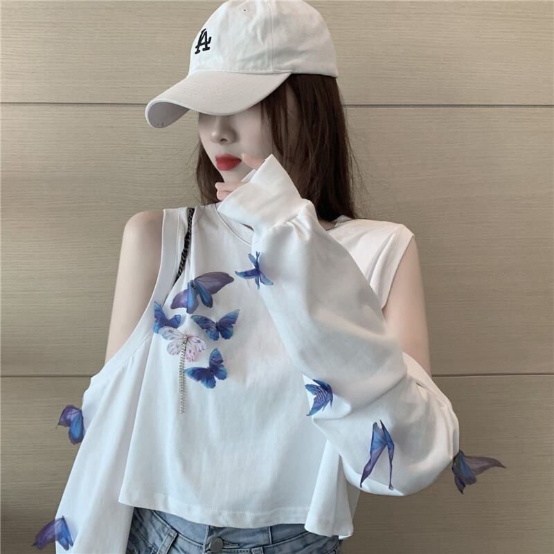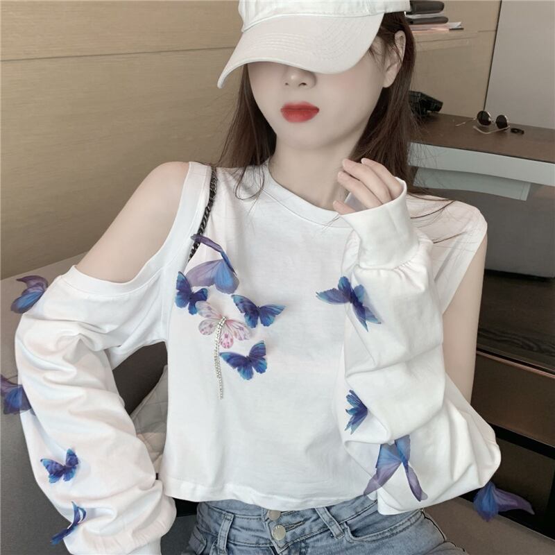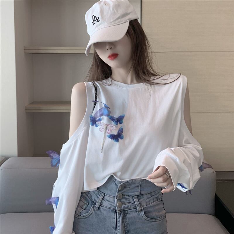 ストラップレスホワイトTシャツレディーススプリング夏服ルーズトレンドトップス ロング 春物 夏物 長袖 YY15507648265