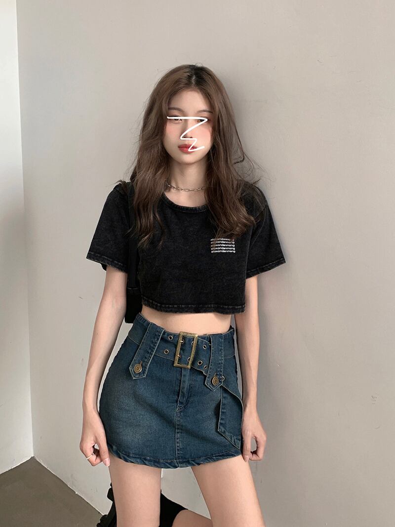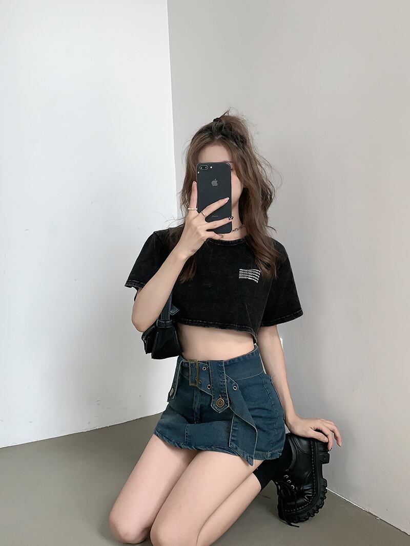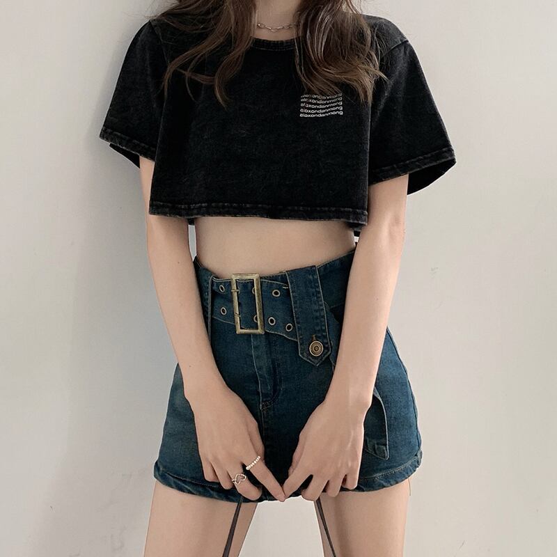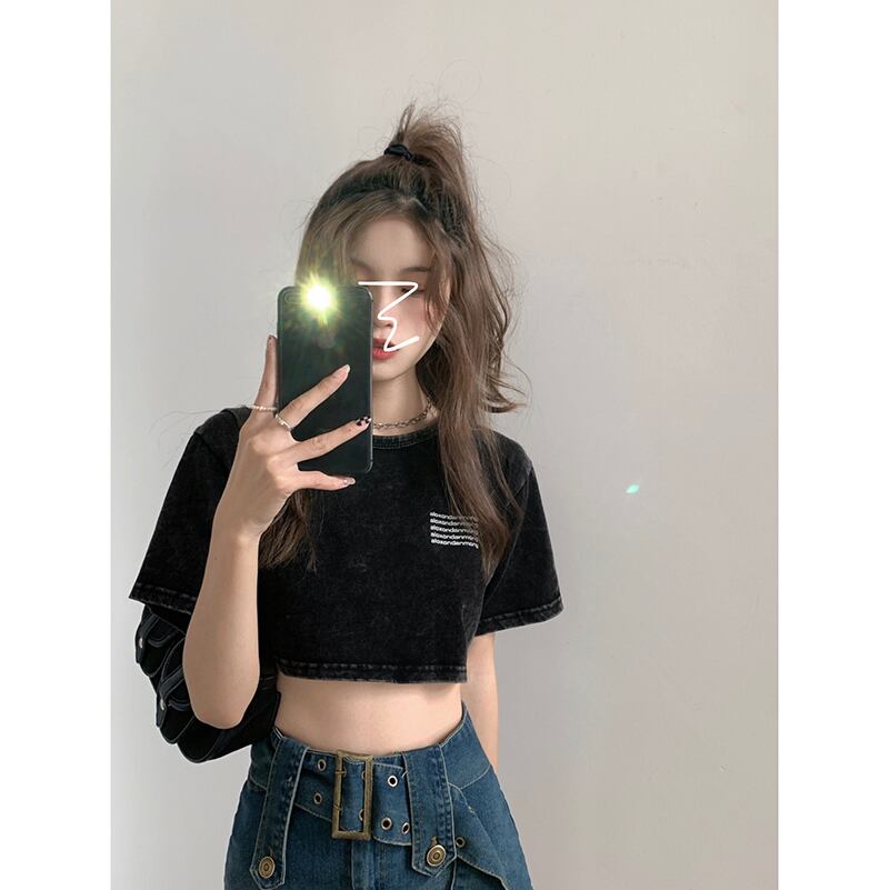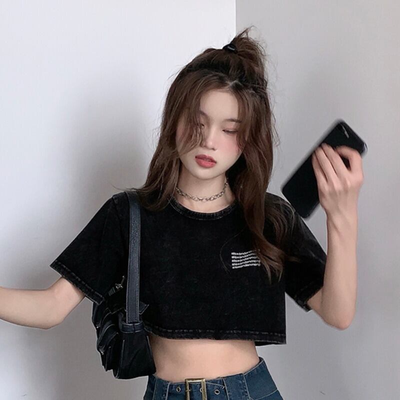 プリントTシャツレディース夏服韓国ファッションルーズ薄手ショートブラックトップス 夏物 スタイル YY19583158975