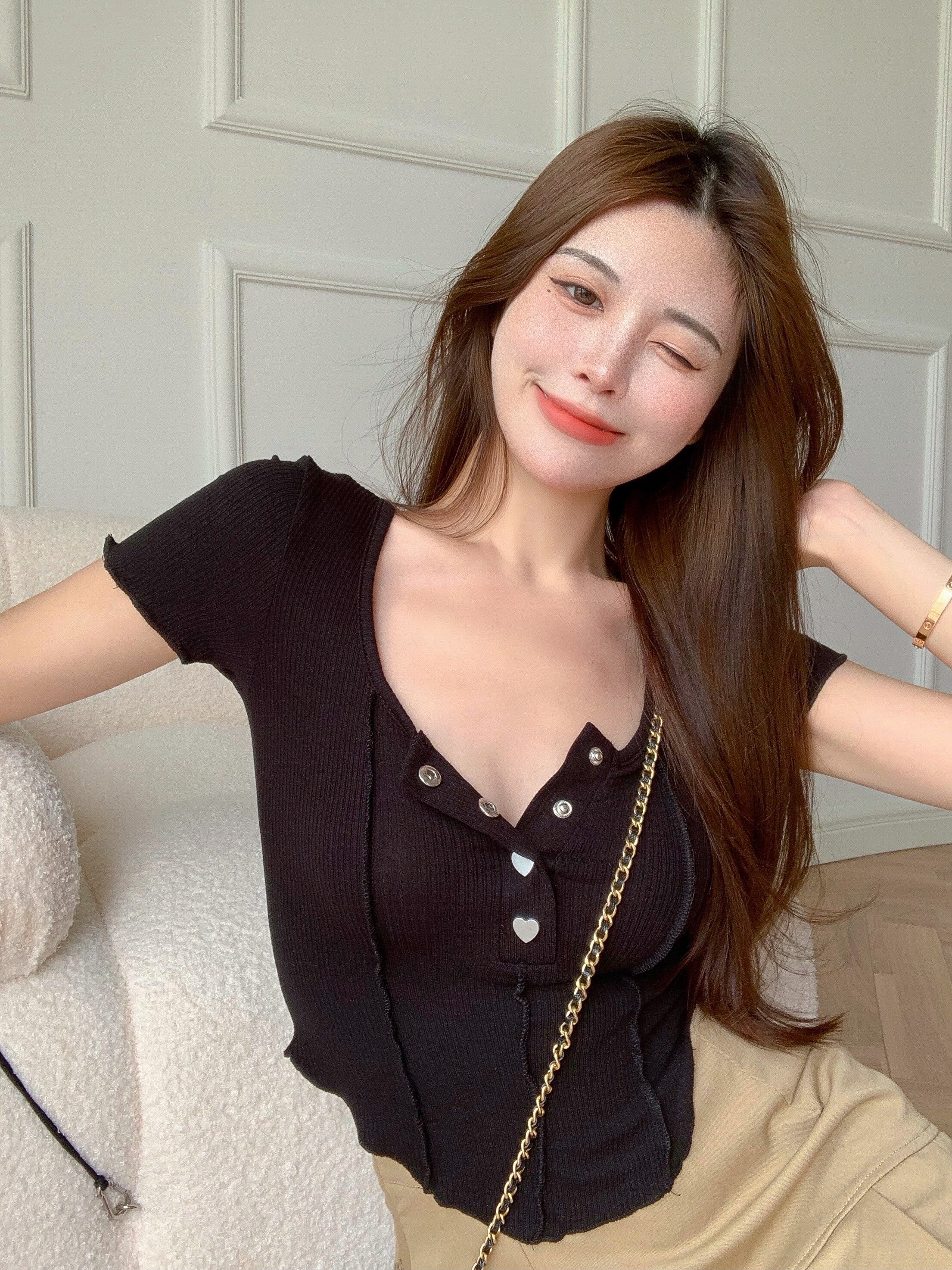 ショートラウンドネックTシャツレディーススプリング夏服 春物 夏物 Oネック YY68133122770