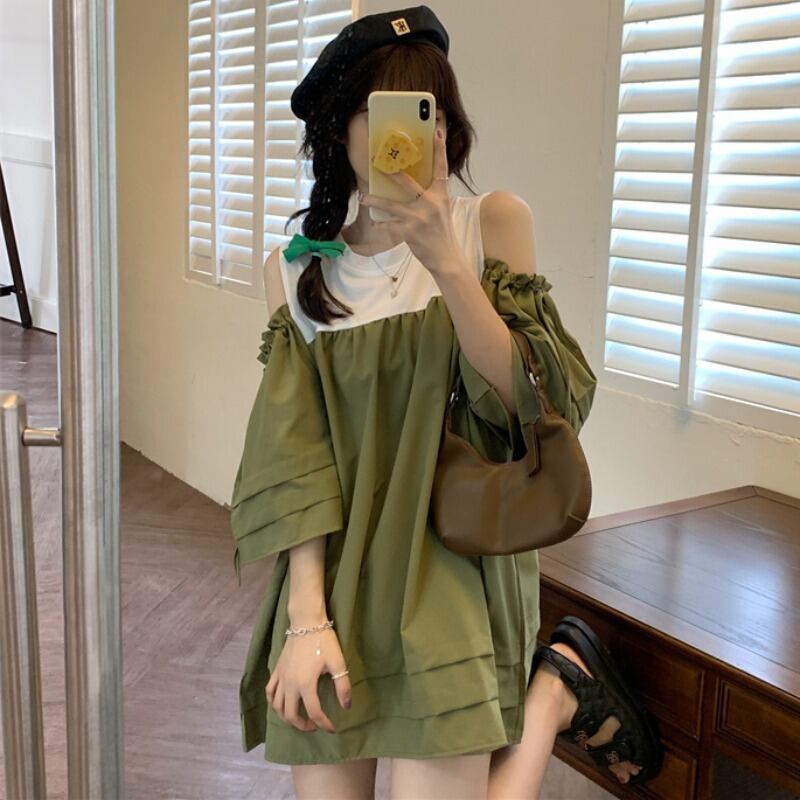 夏服スタイル韓国ファッションルーズスリムストラップレスレースワンピーストップス レディース 夏物 ステッチ YY94167687584