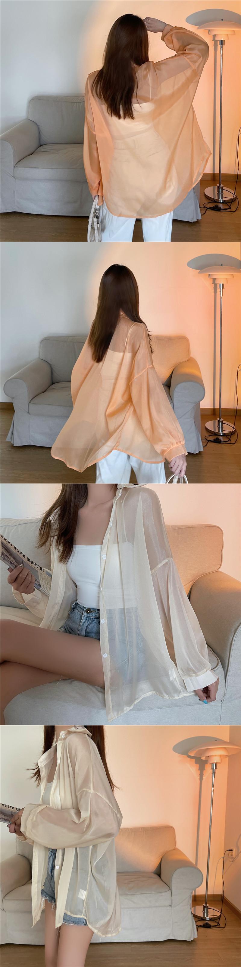 ホワイト薄手ブラウス 夏服シフォン 夏物 パール 真珠 YY57757303854