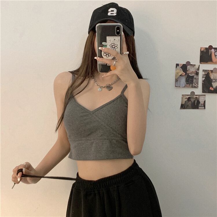 夏服Vネックショートカジュアルバックトップス トレンド 夏物 YY90541897131