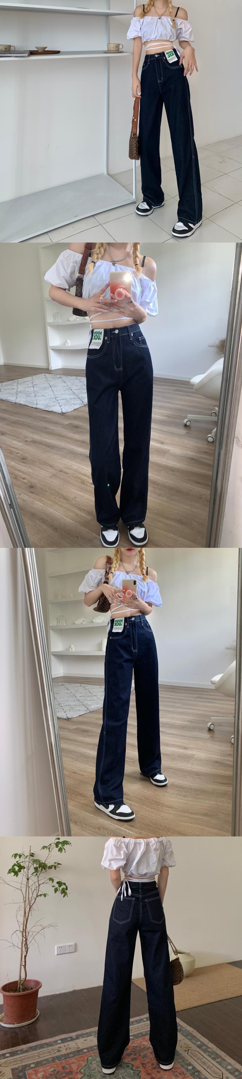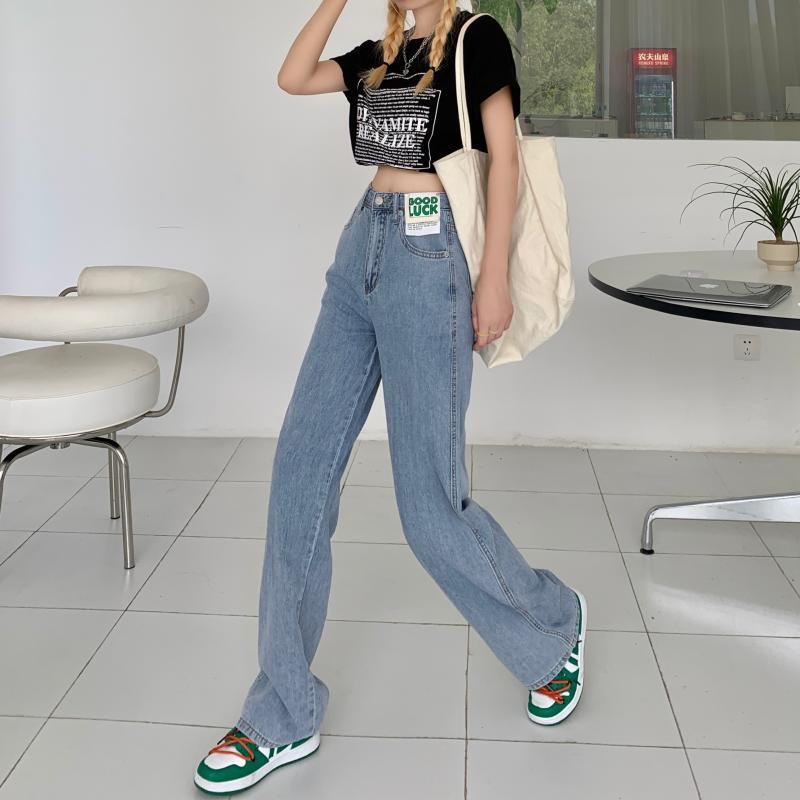 ジーンズ 夏服スタンダードスタイルハイウェストウェスト薄手 レトロ 夏物 ワイドレッグ ワイドパンツ ウエスト YY28984731094