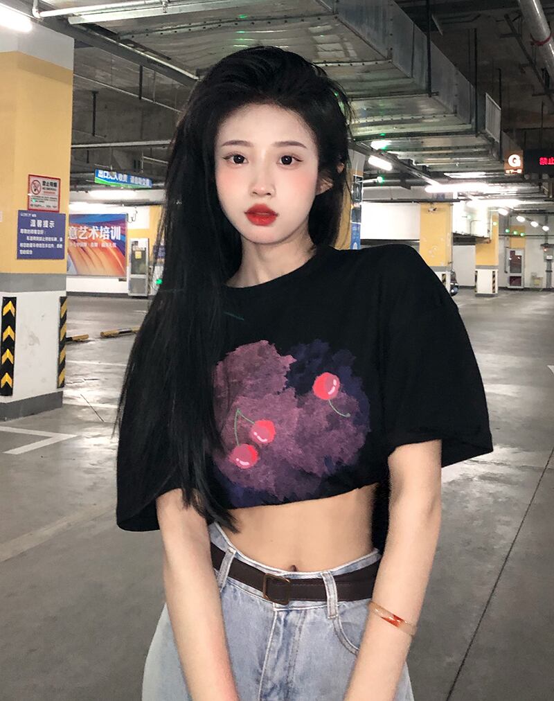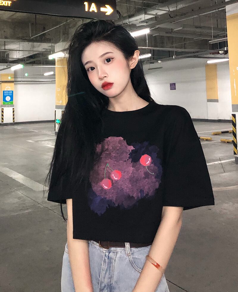 色:ホワイト水彩チェリーショートT,黒水彩チェリーショートT