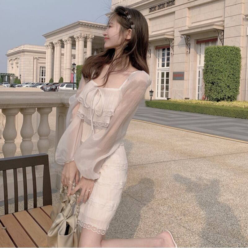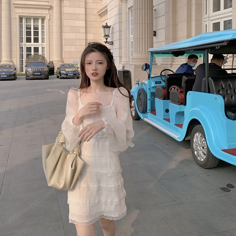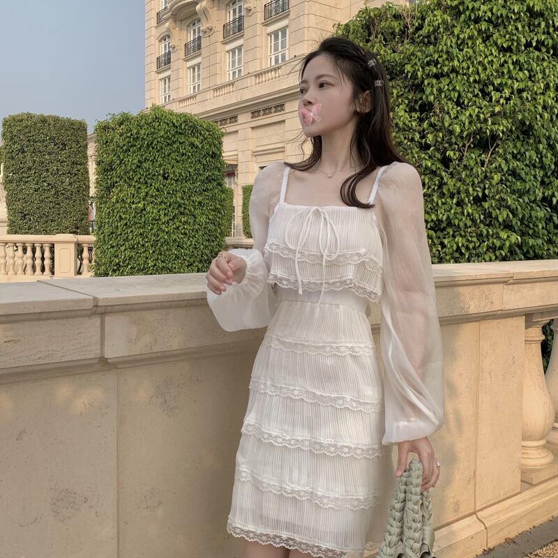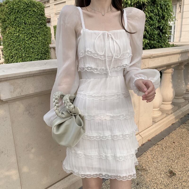 ホワイトワンピースレディーススプリング夏服スタンダードスカート ウェストレース レトロ 春物 夏物 ステッチ ウエスト YY55418736535