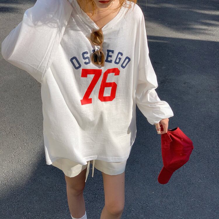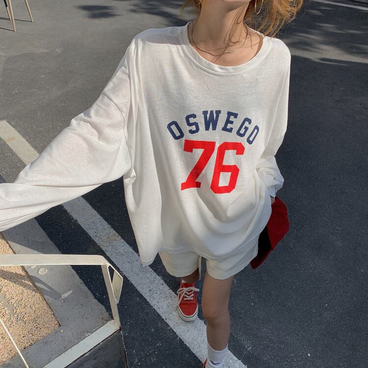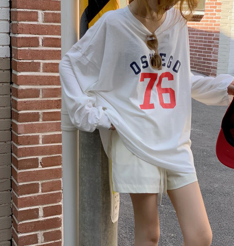 韓国ファッションルーズ薄手シャツ レディース夏服Tシャツトップス ロング 夏物 長袖 ミドル丈 YY71904897659