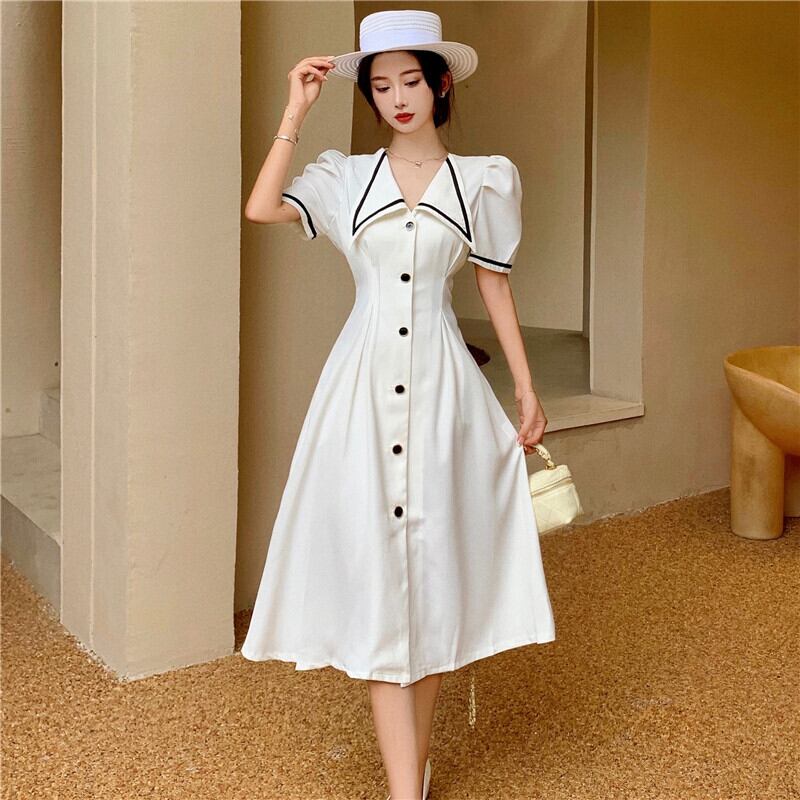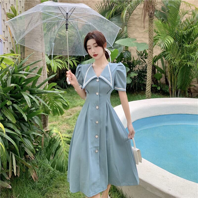 カラーワンピーススカート レディース夏服ウェストスリーブAライン 夏物 ウエスト ミドル丈 YY77290450880