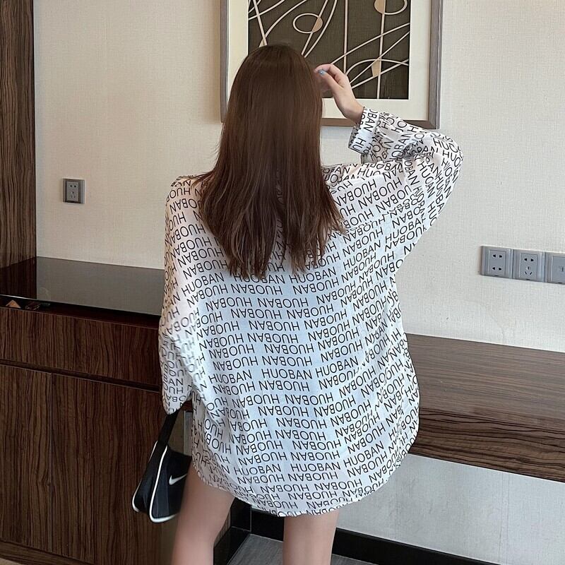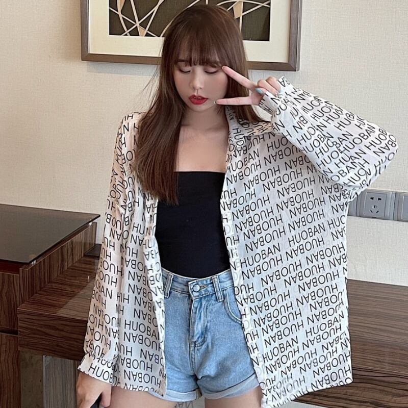 韓国ファッションルーズプリントシャツ レディース夏服カジュアル薄手シフォンジャケット ロング 夏物 スタイル 長袖 YY12279565495